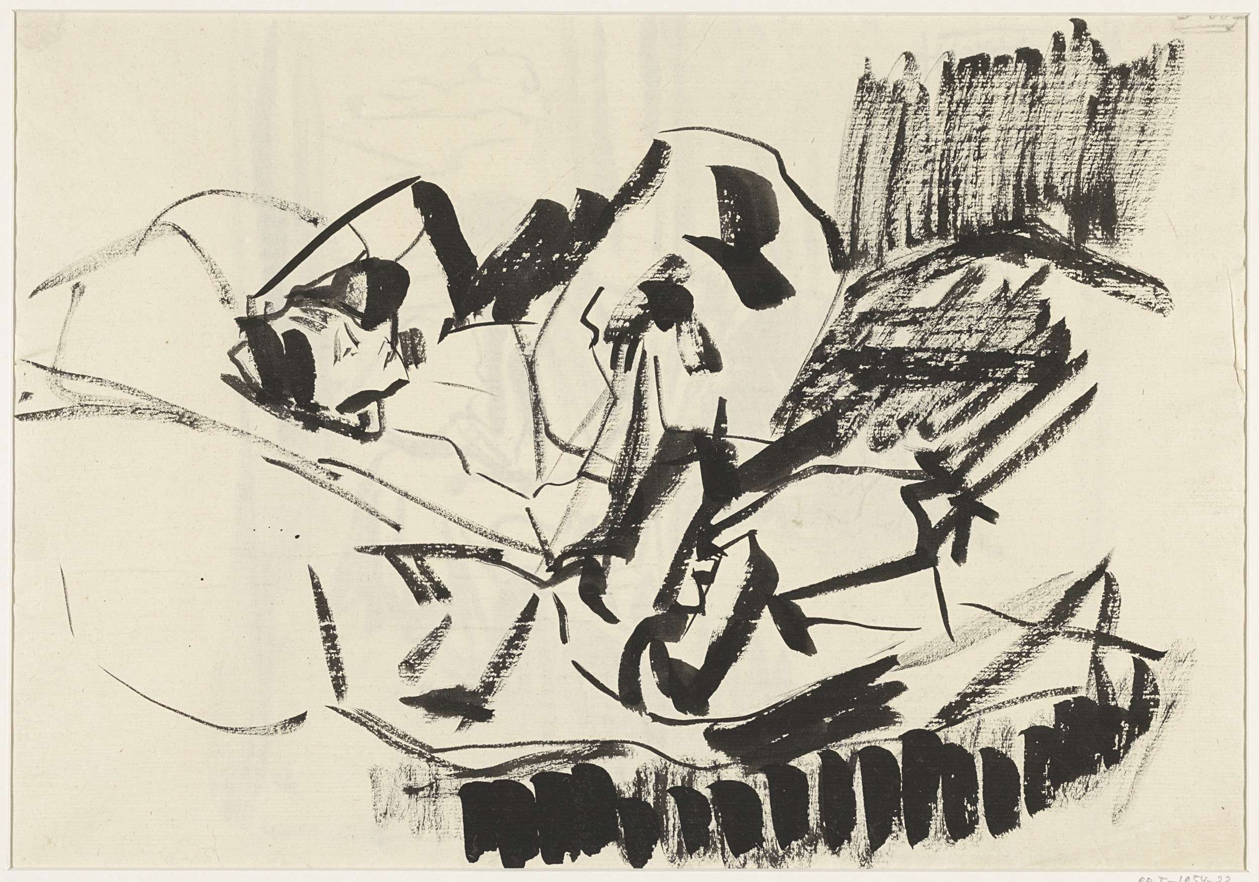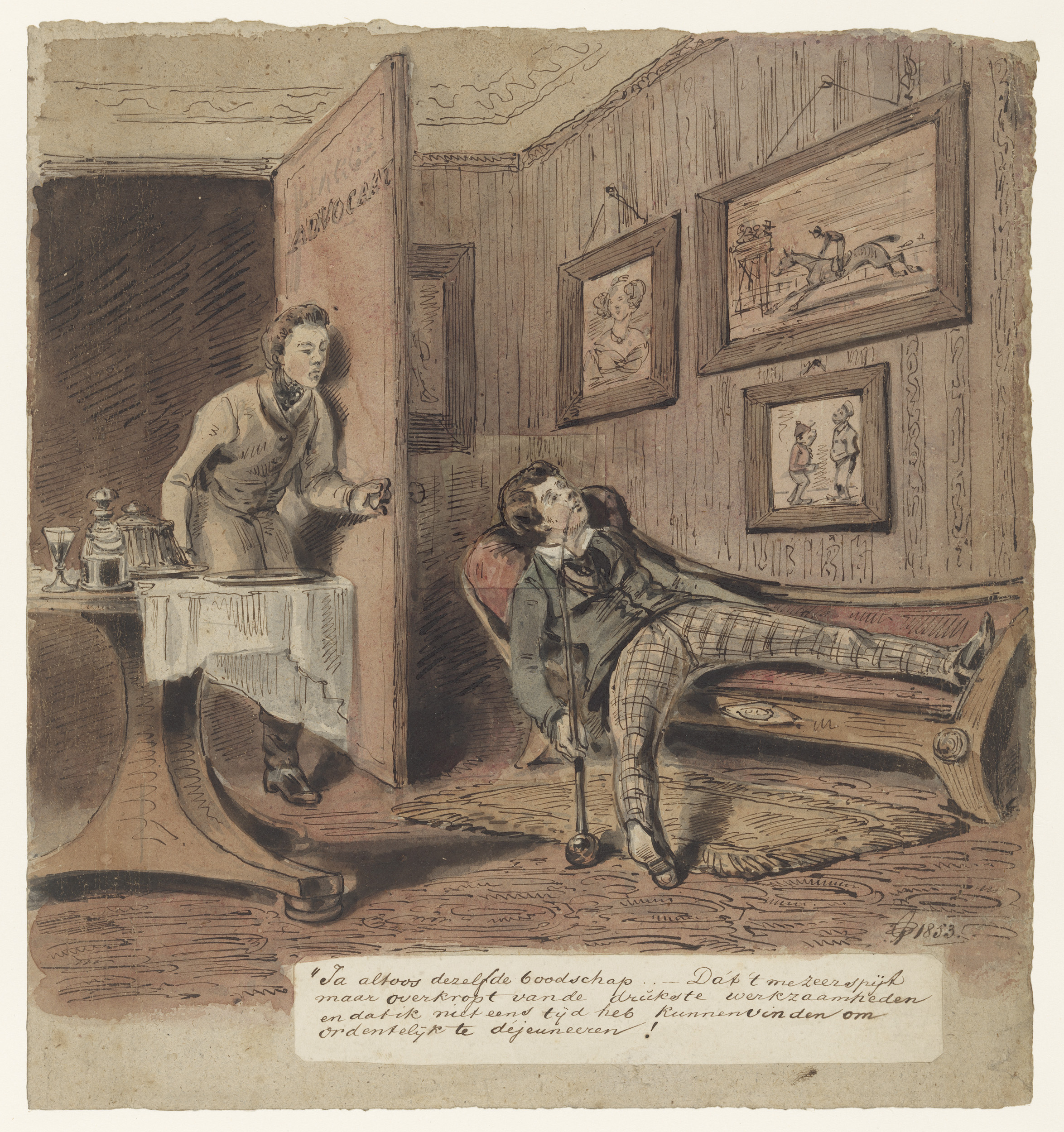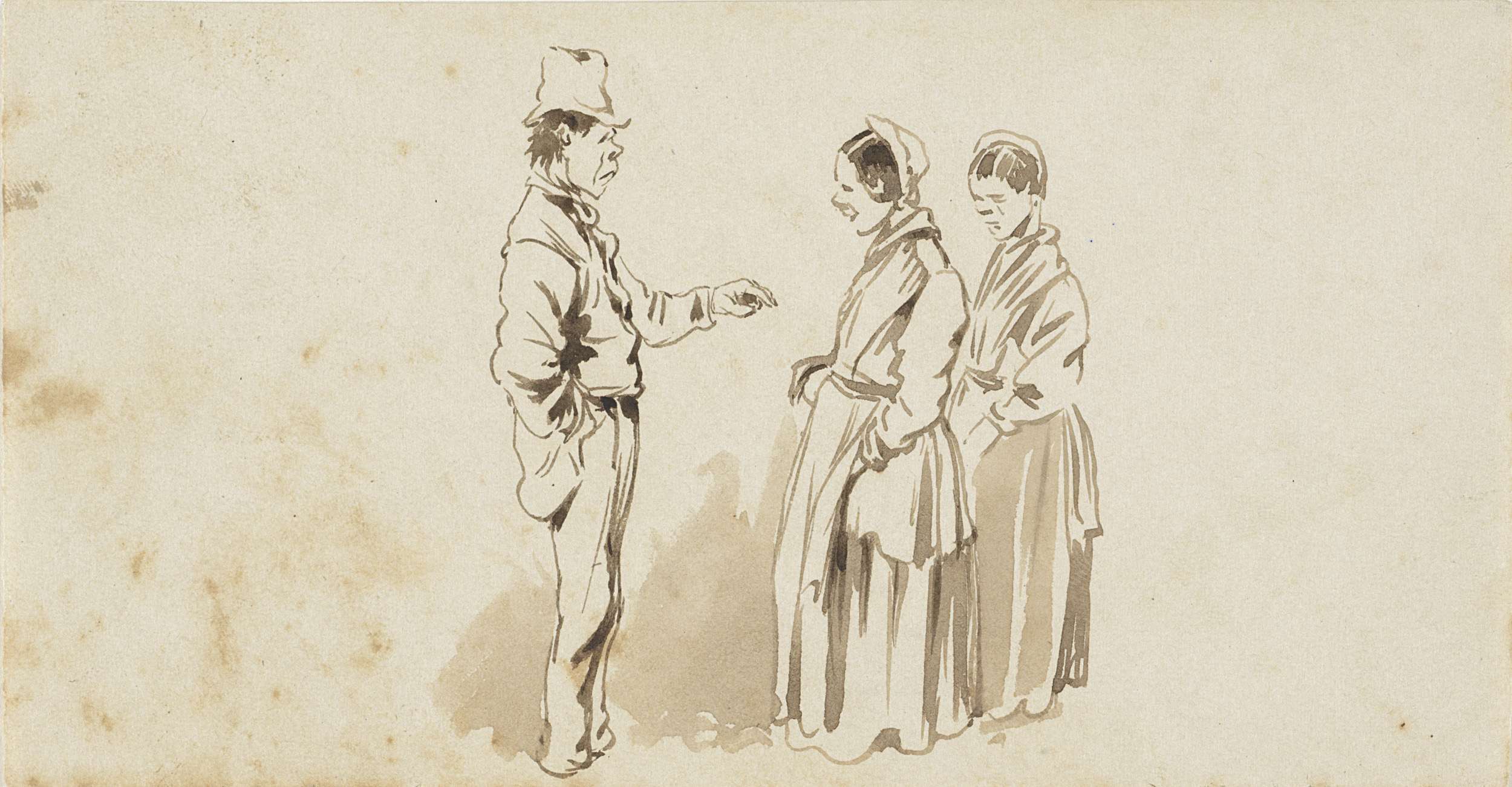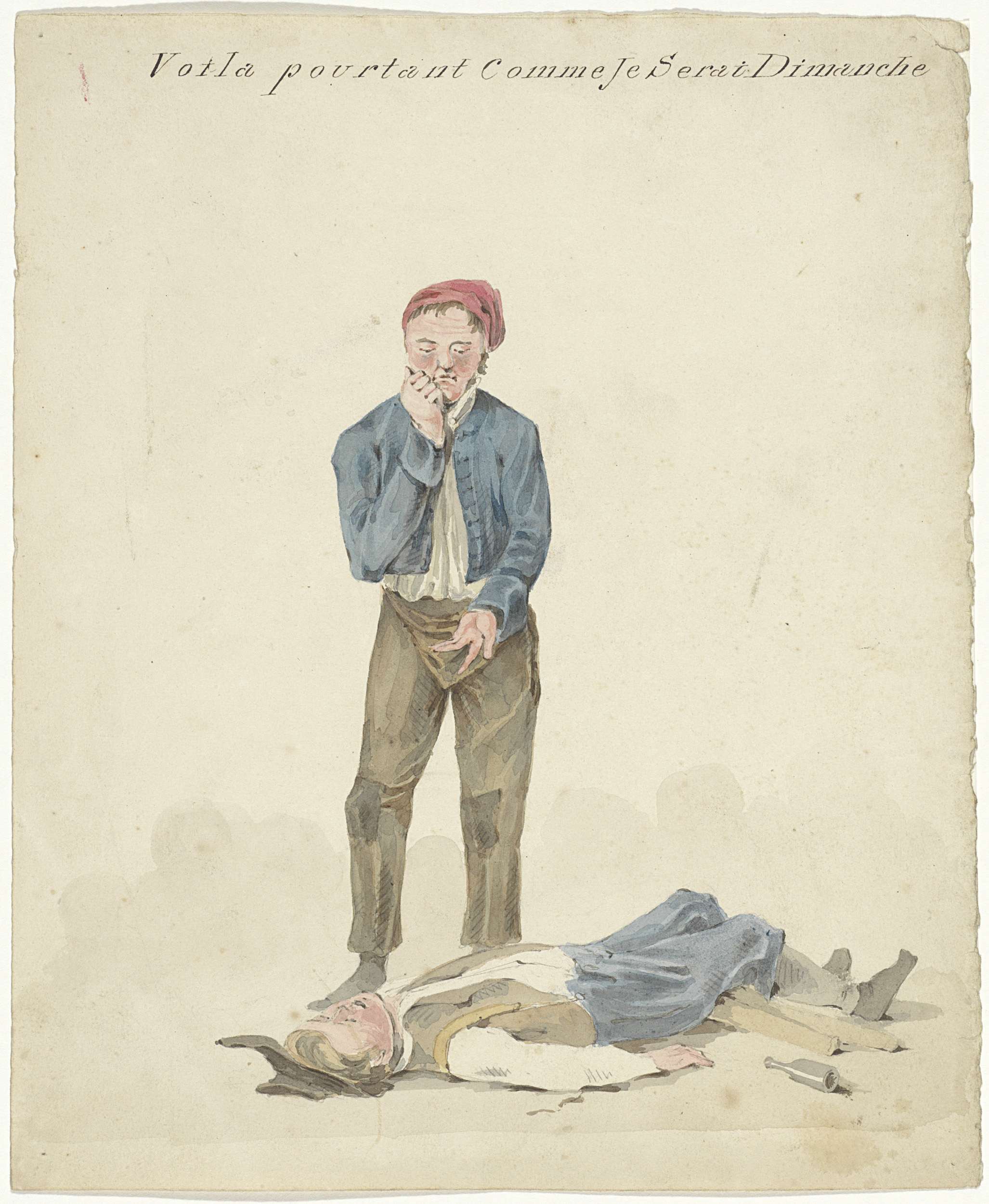 Staande man bij liggende dronkaard