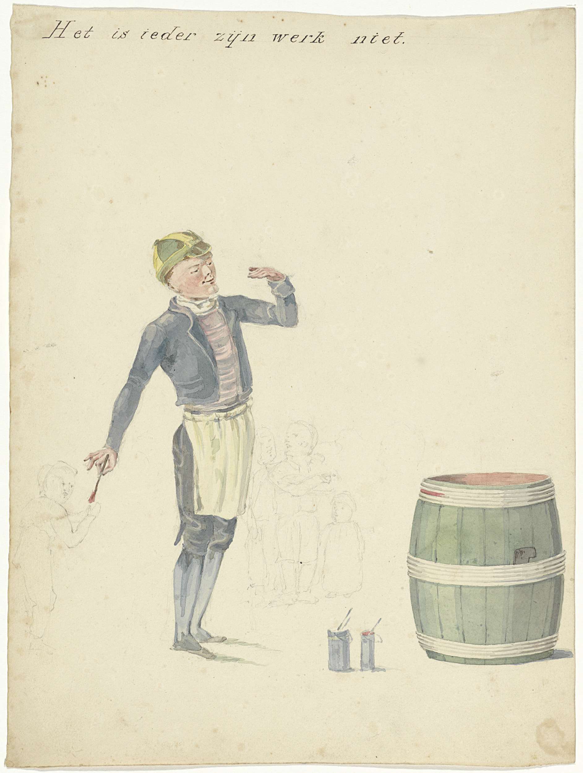 Schooljongen die een ton beschildert