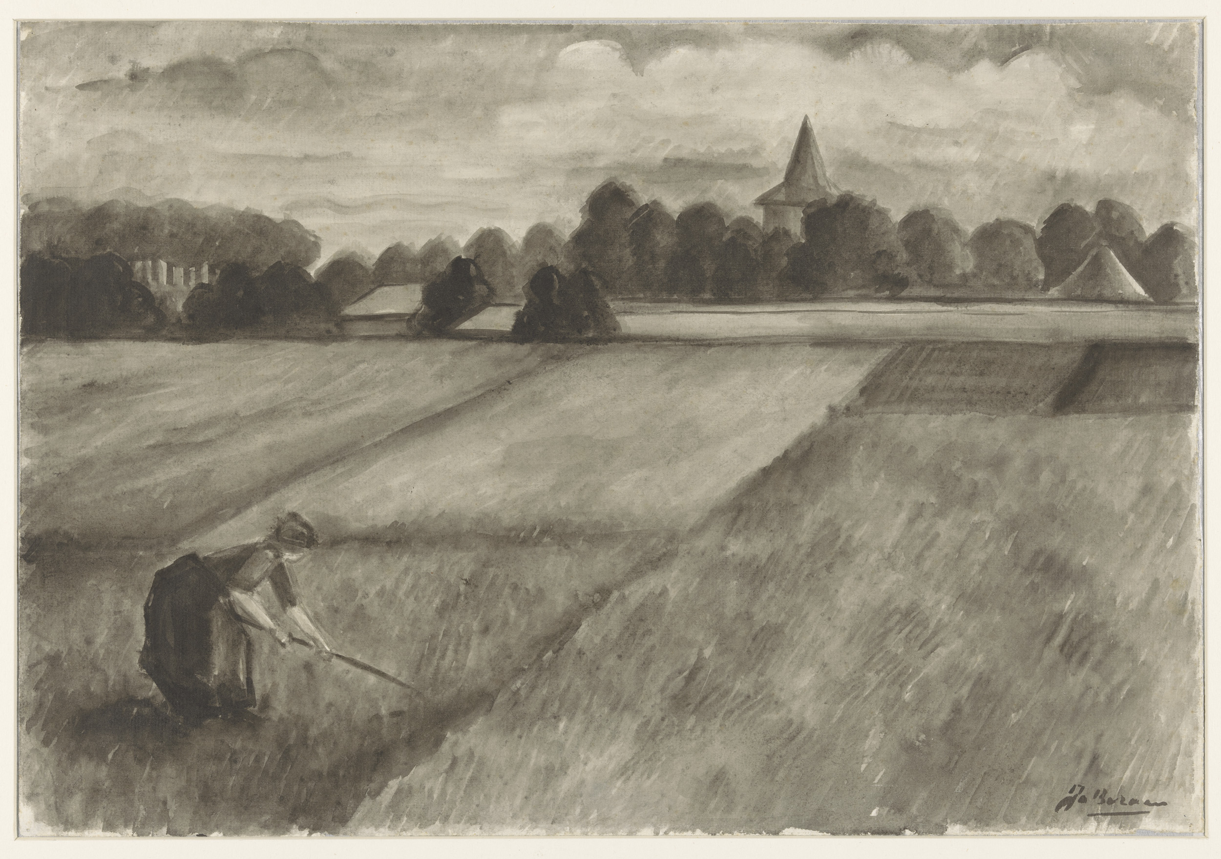 Vrouw werkt op het land