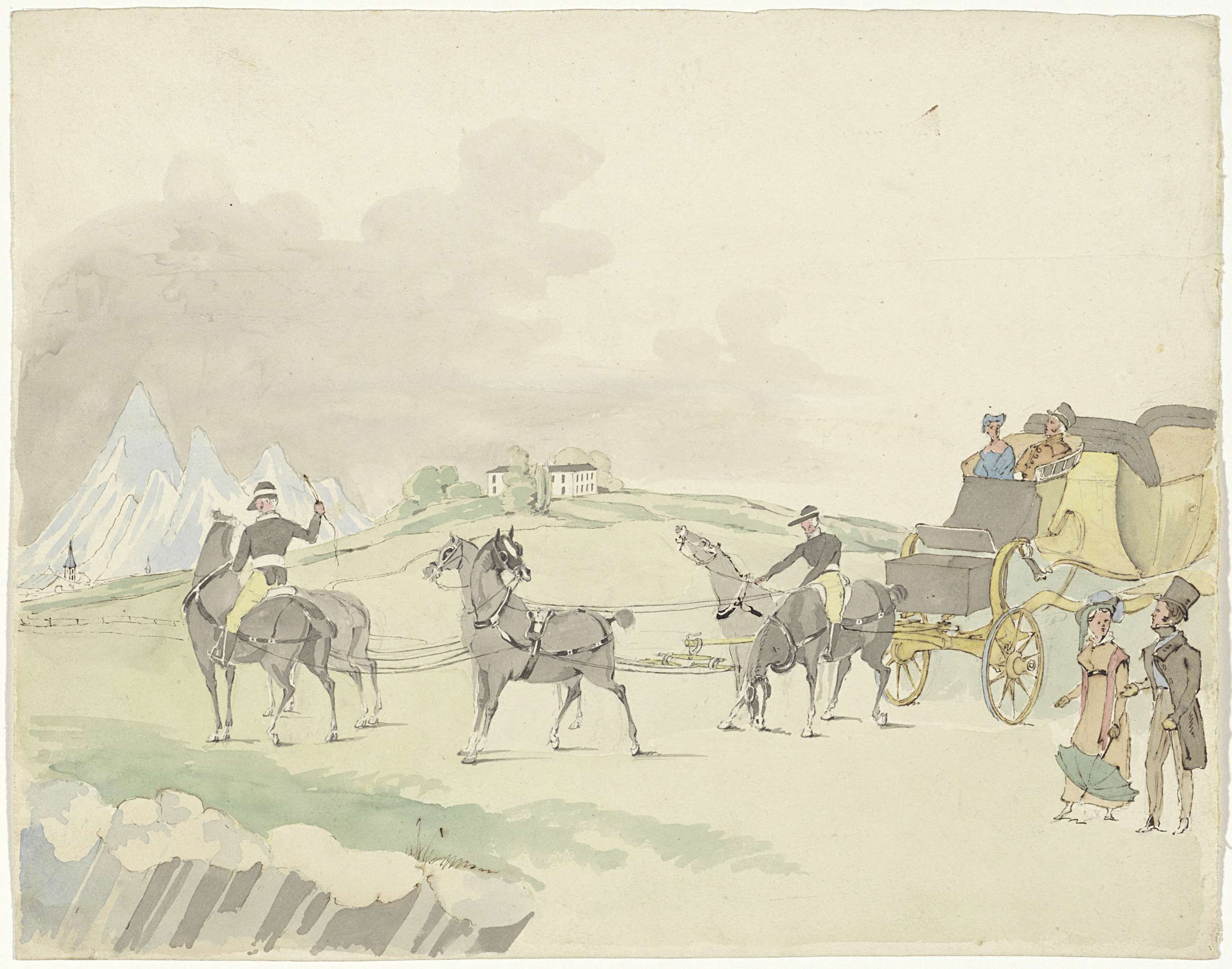 Reiskoets in een berglandschap