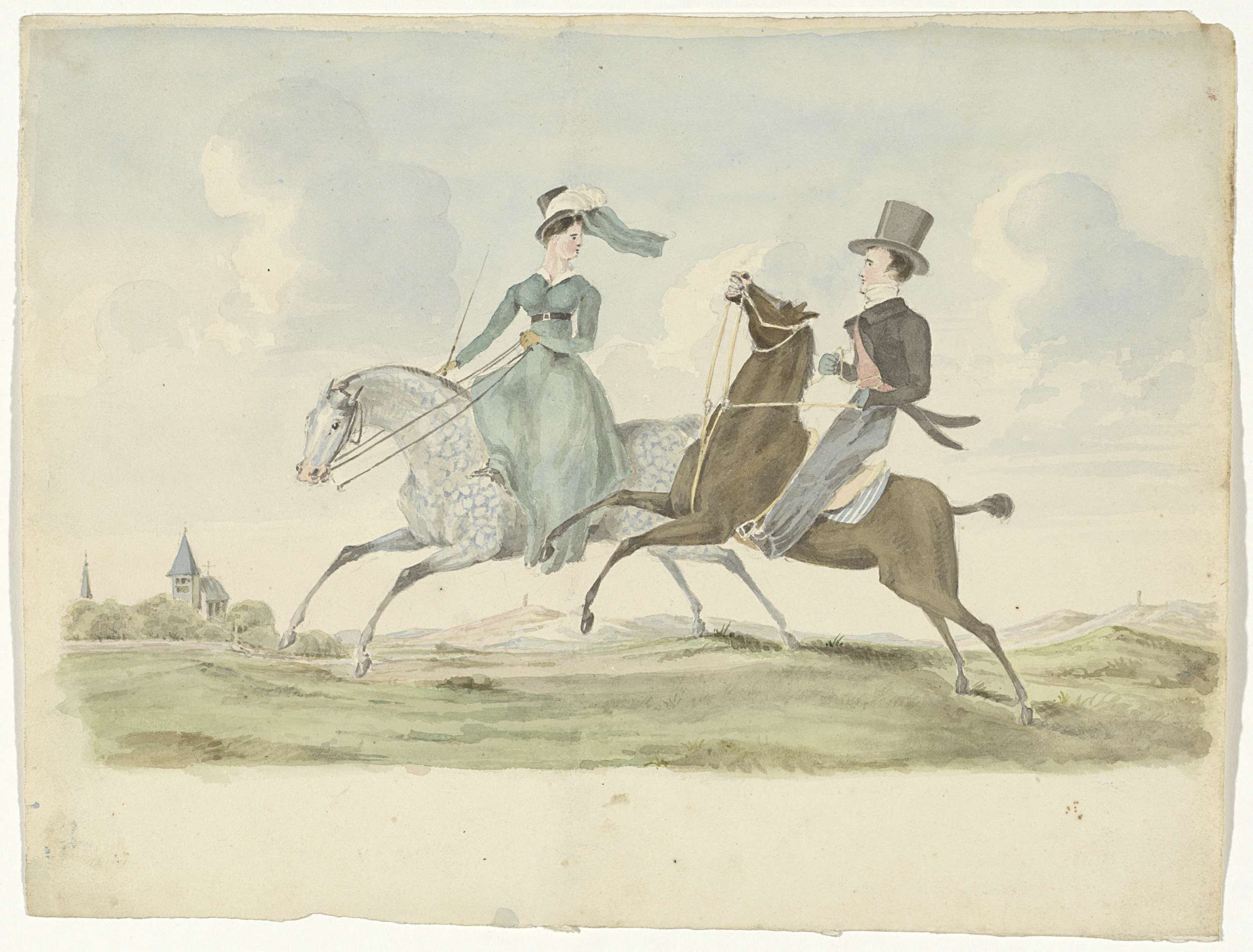 Man en vrouw te paard in een landschap