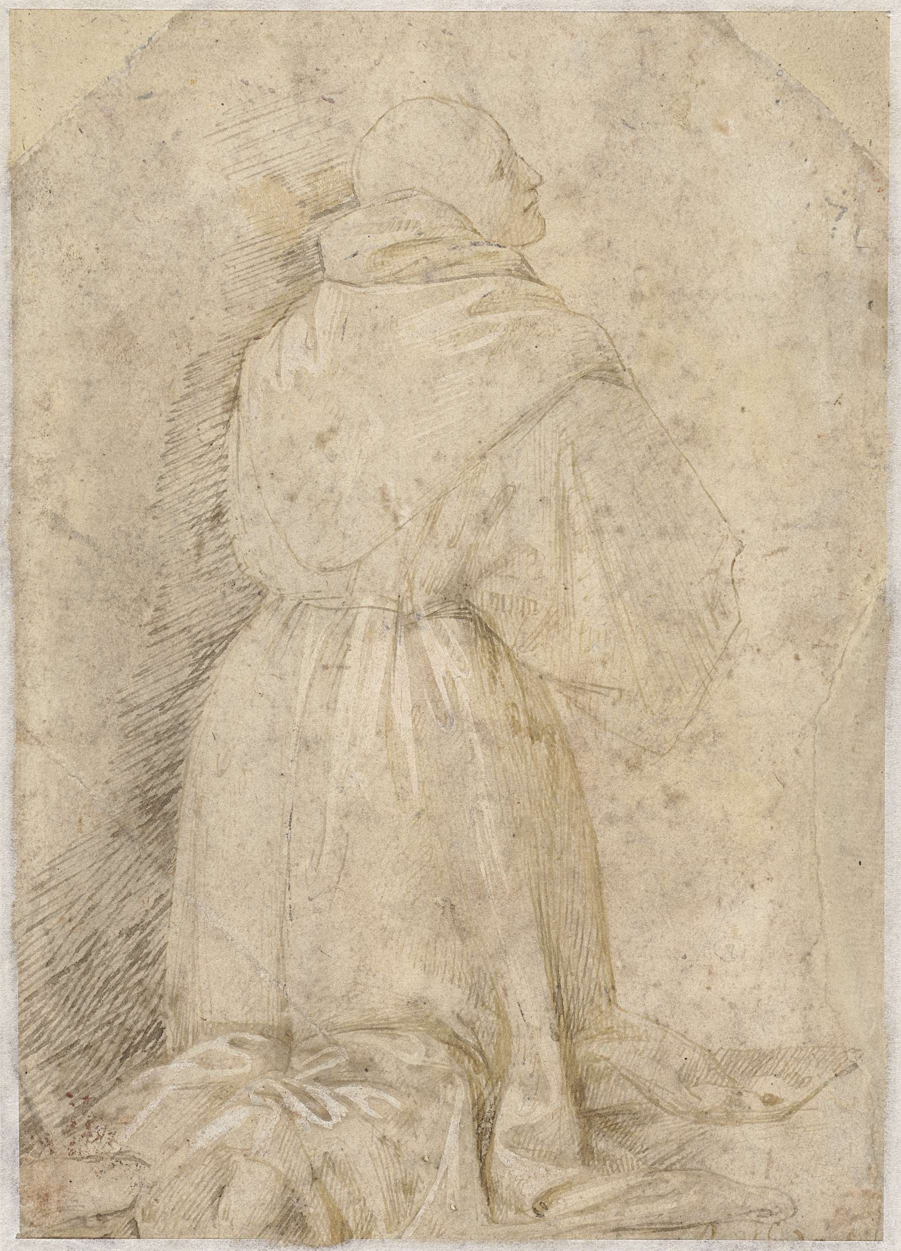 Oude man met staf en puntmuts