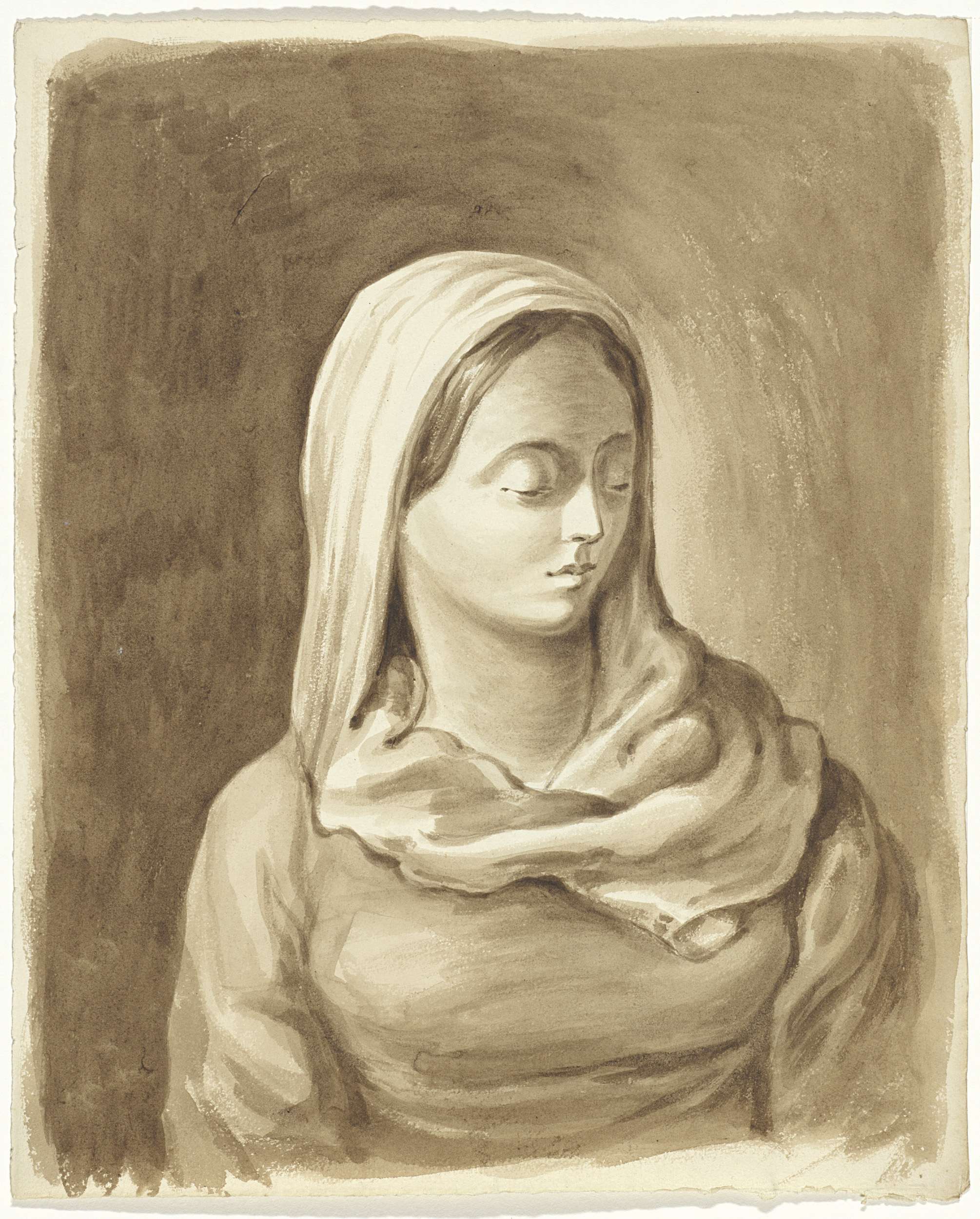 Vrouw met hoofddoek, ten halven lijve