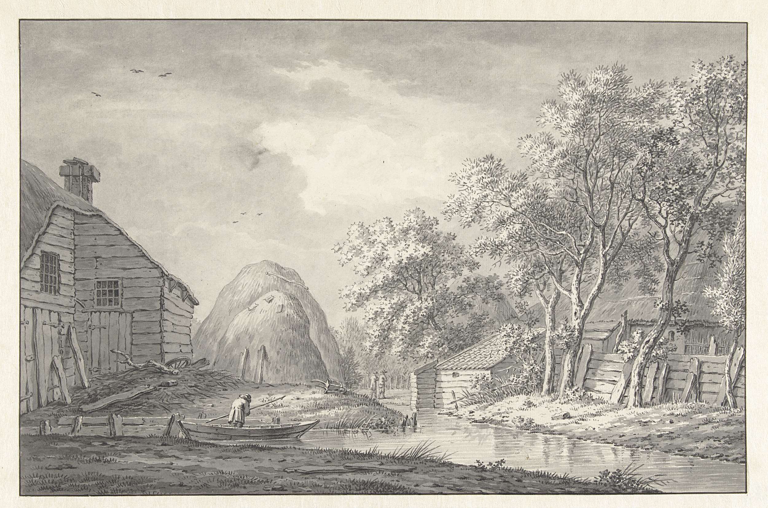 Weidelandschap met hooiwagen en windmolen