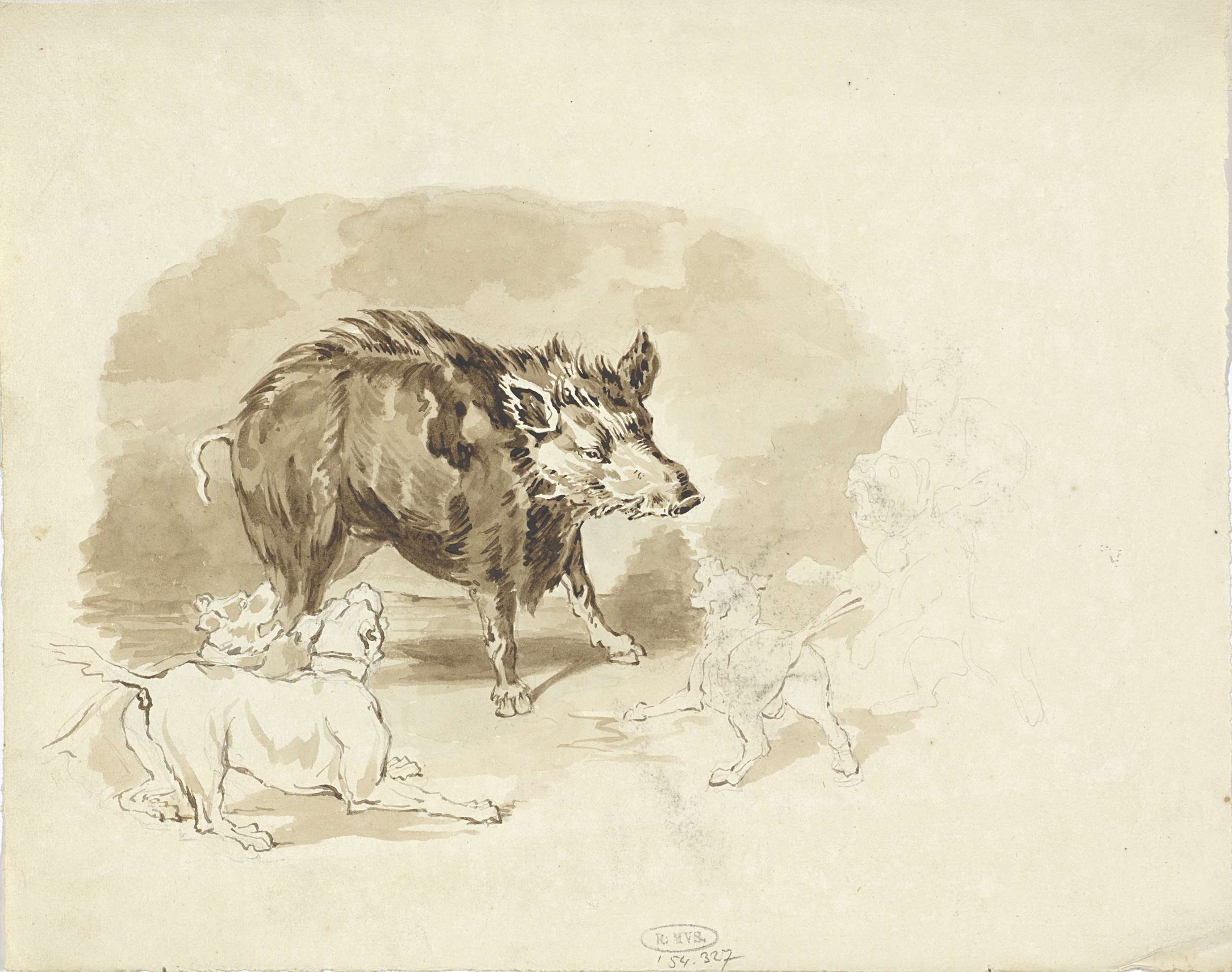 Everzwijn aangevallen door jachthonden