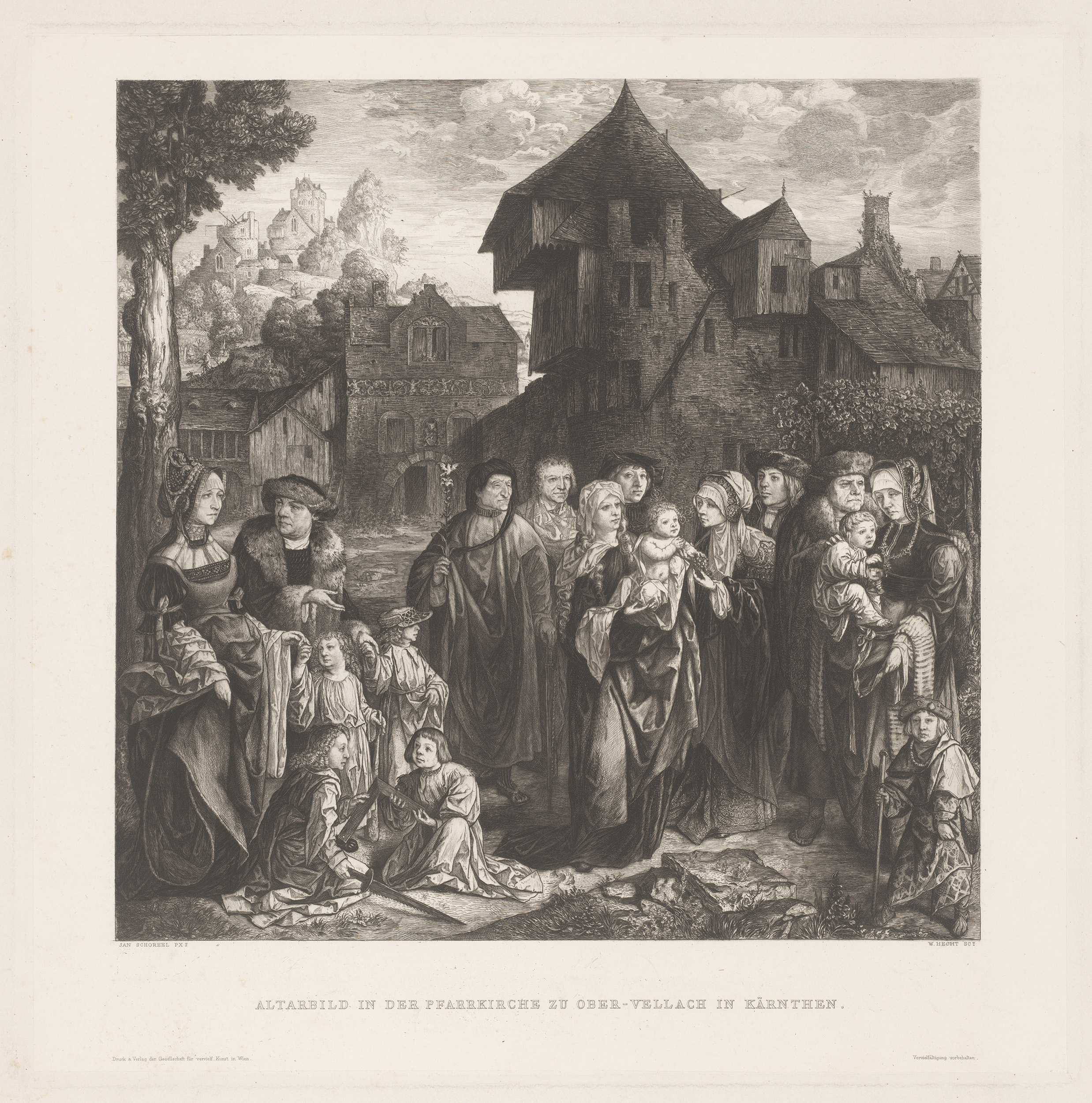 Stadsgezicht met de heilige familie en schenkers