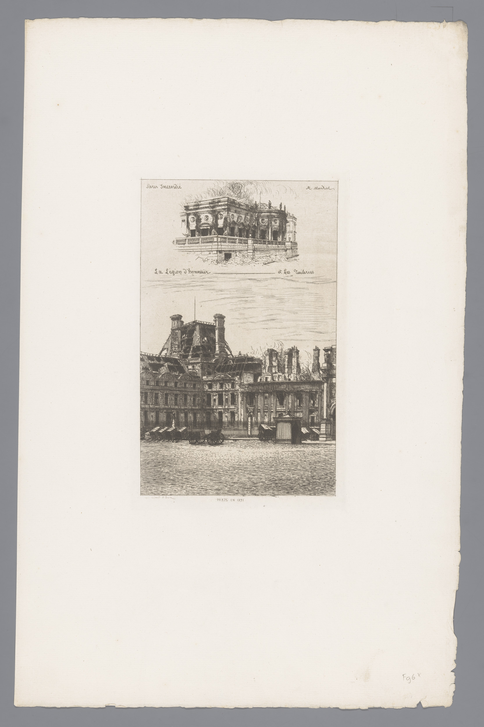 Brandend Palais de la Légion d'Honneur en ruïne van ...