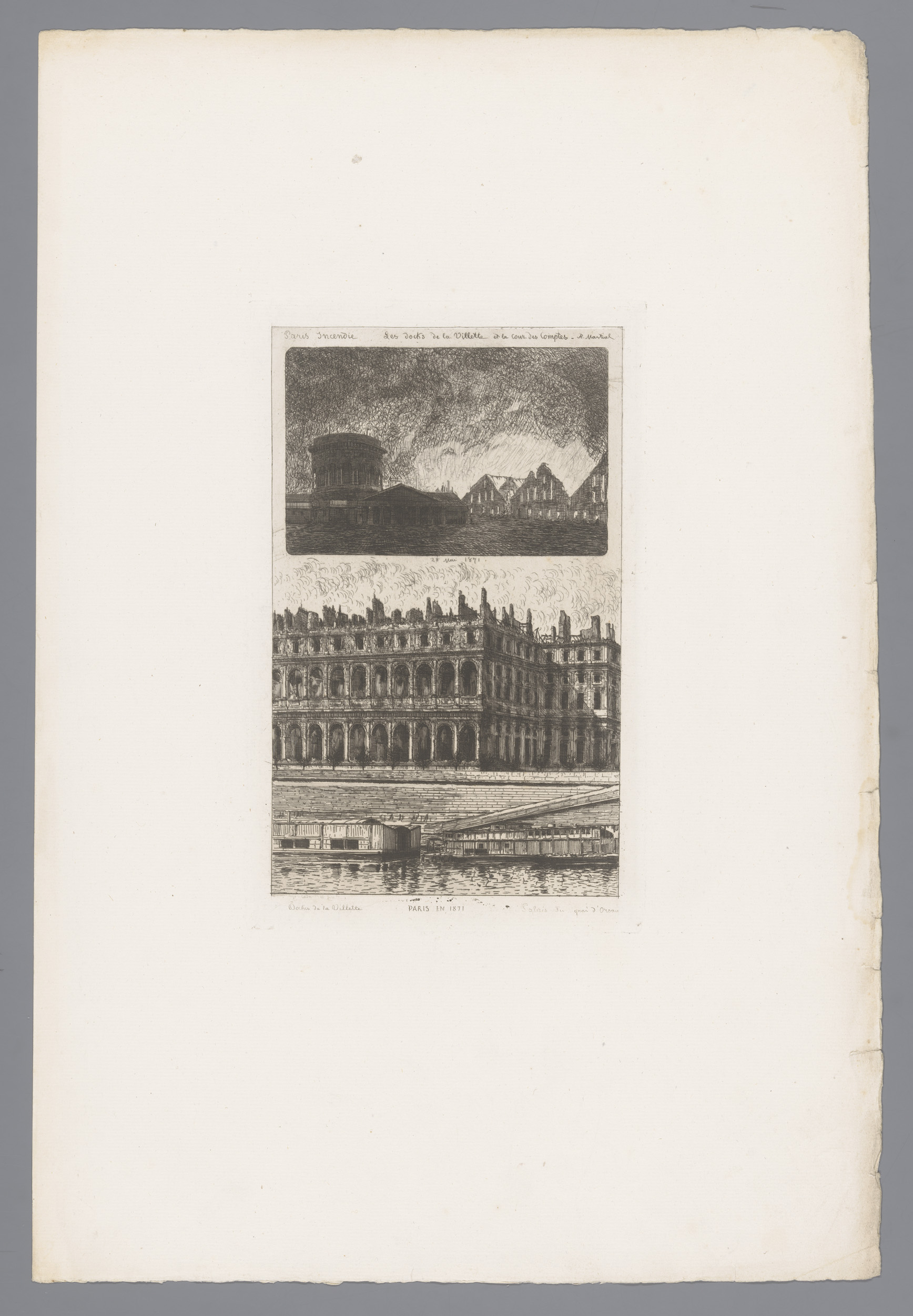 Haven van Villette en het Cour des Comptes in brand