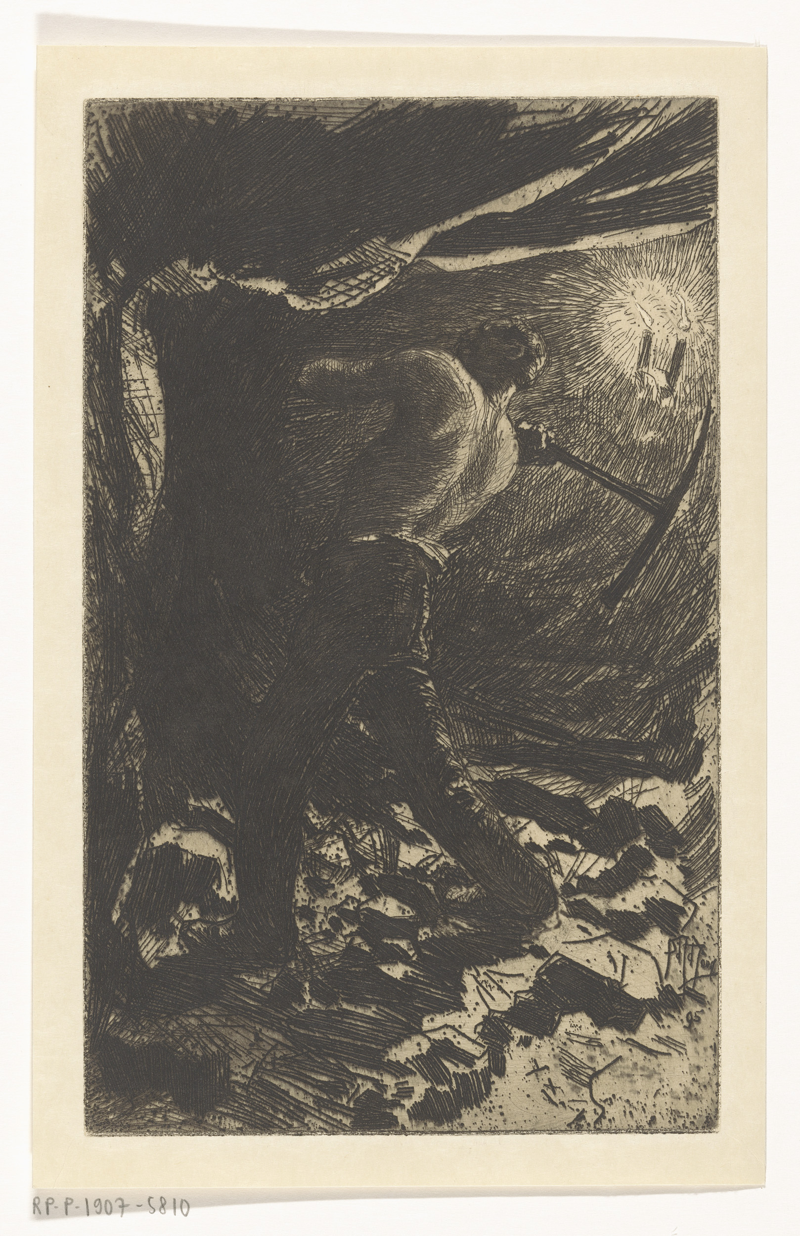 Mijnarbeider met bloot bovenlijf