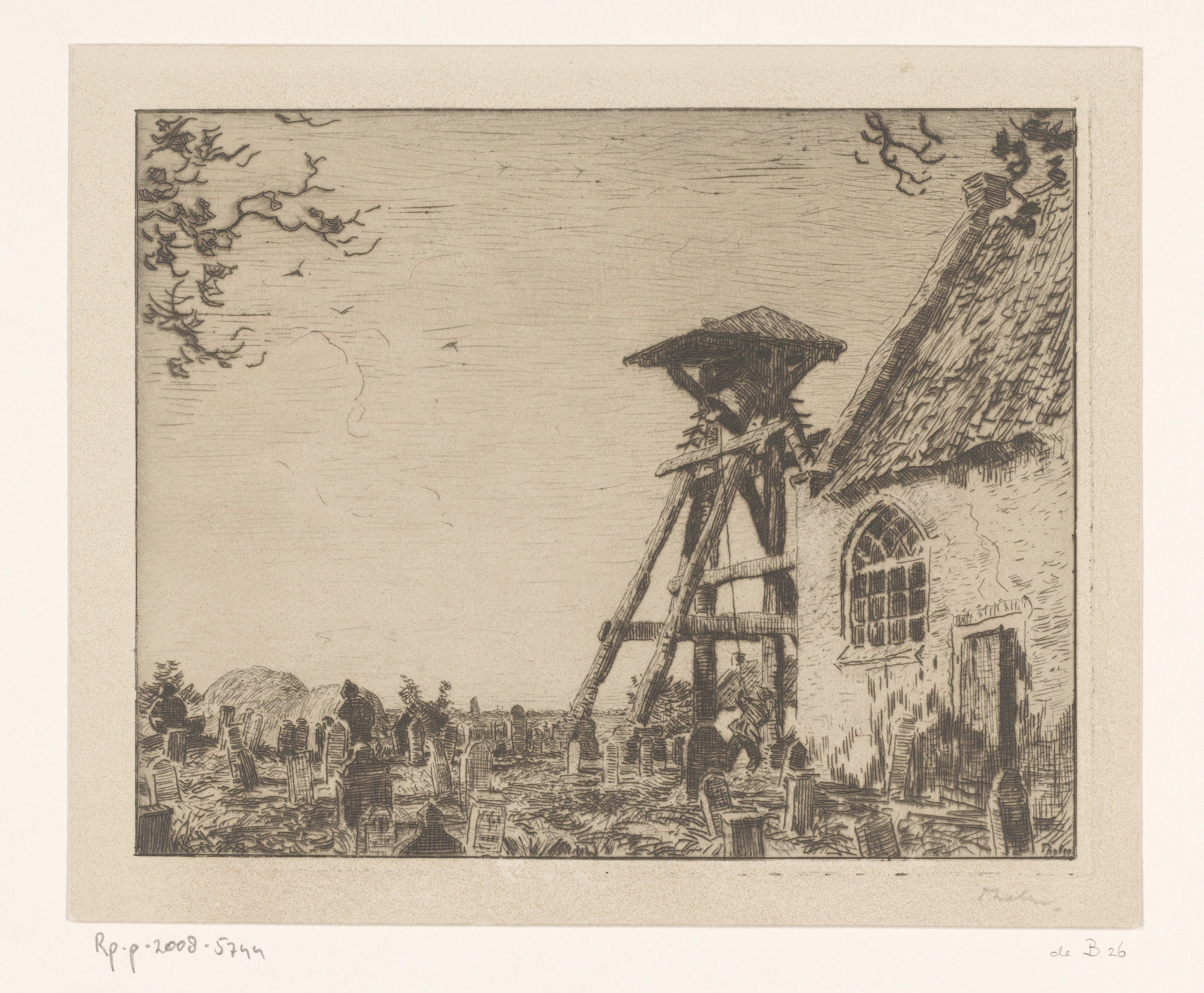 Kerk met kerkhof en klokkenstoel
