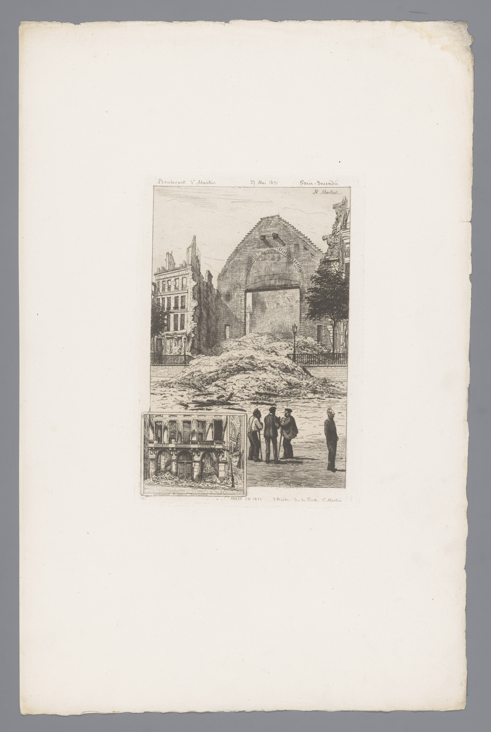 Gezicht op ruïnes op de Boulevard Saint-Martin