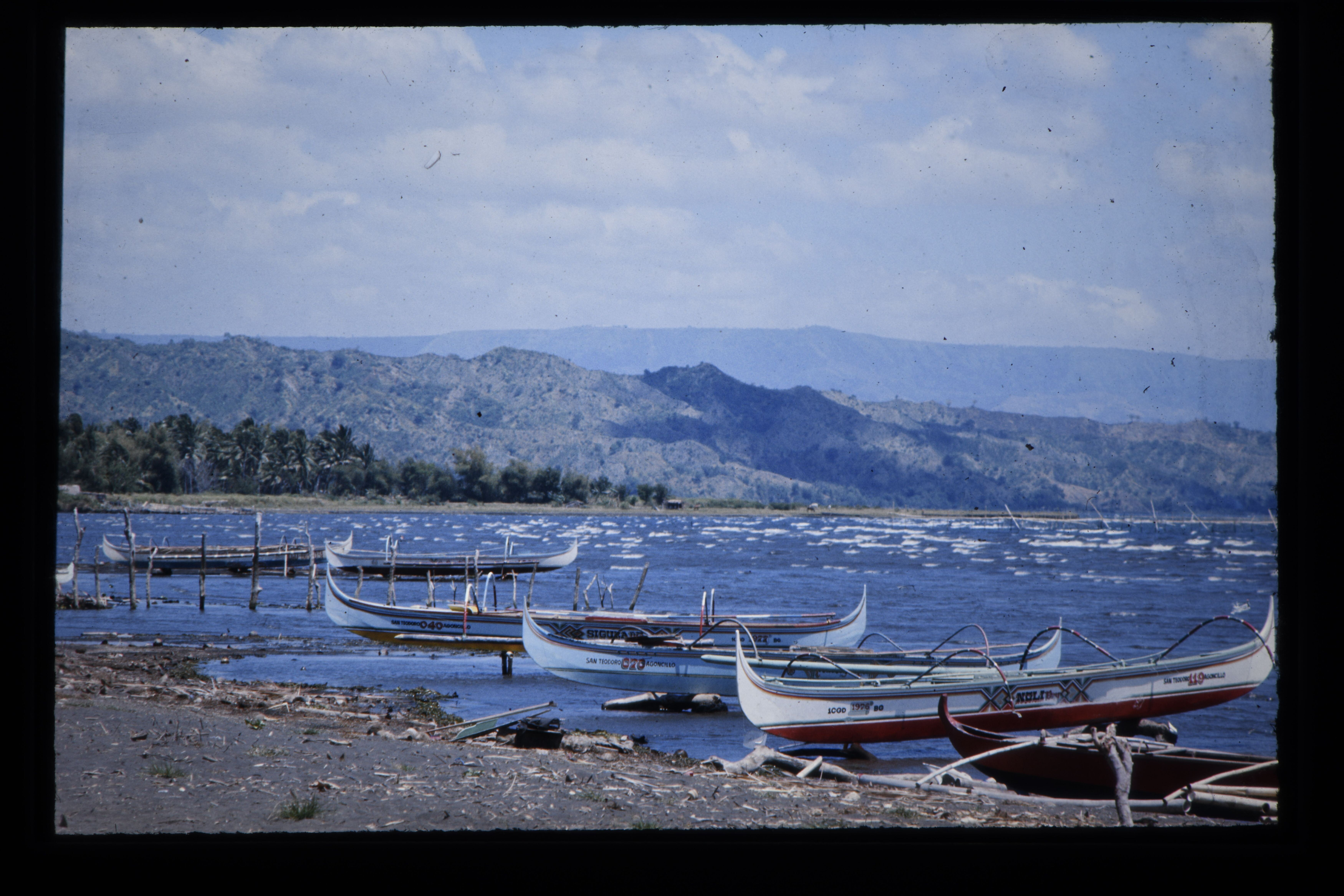 'Vissersboten in het Taal meer, groot kratermeer met...
