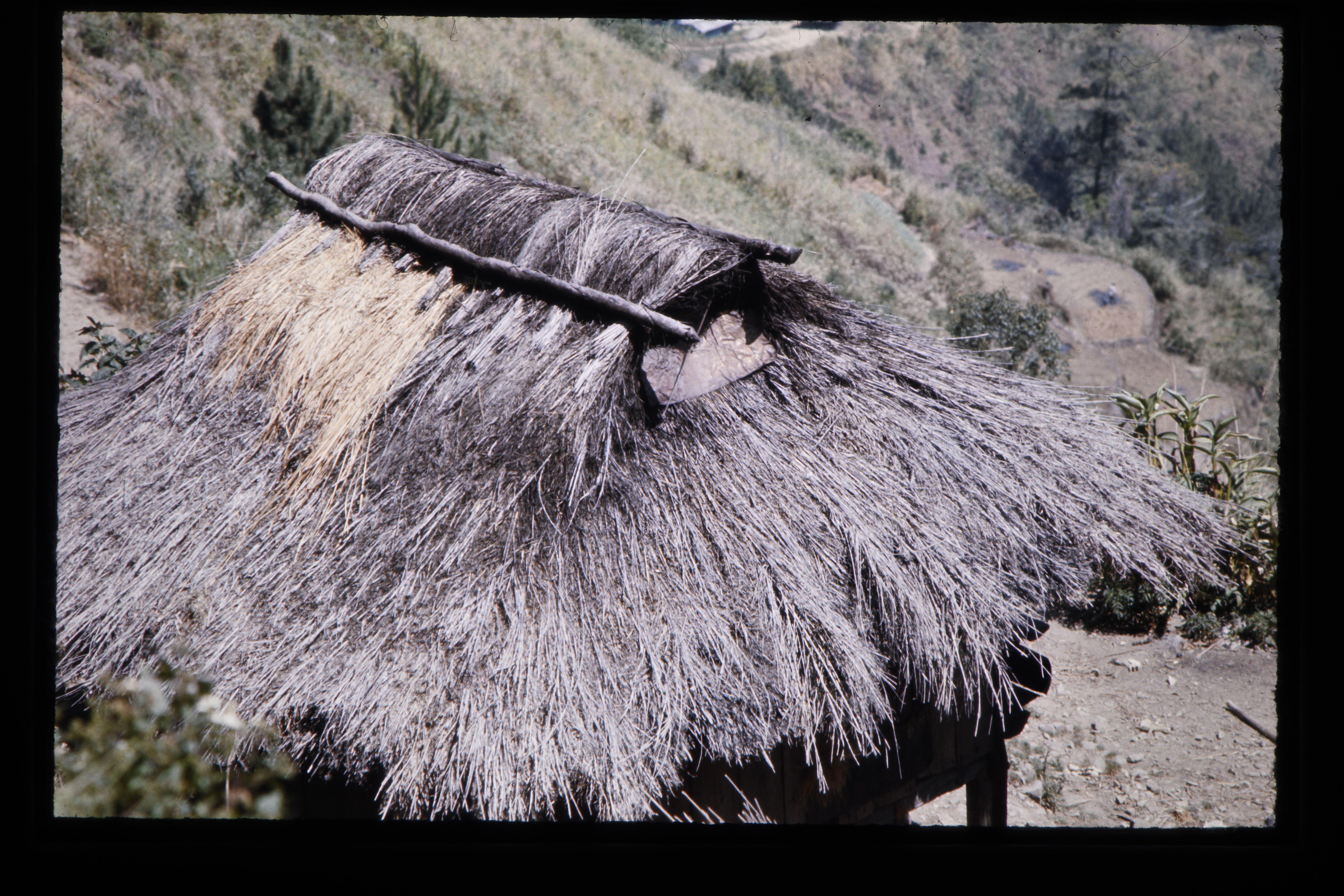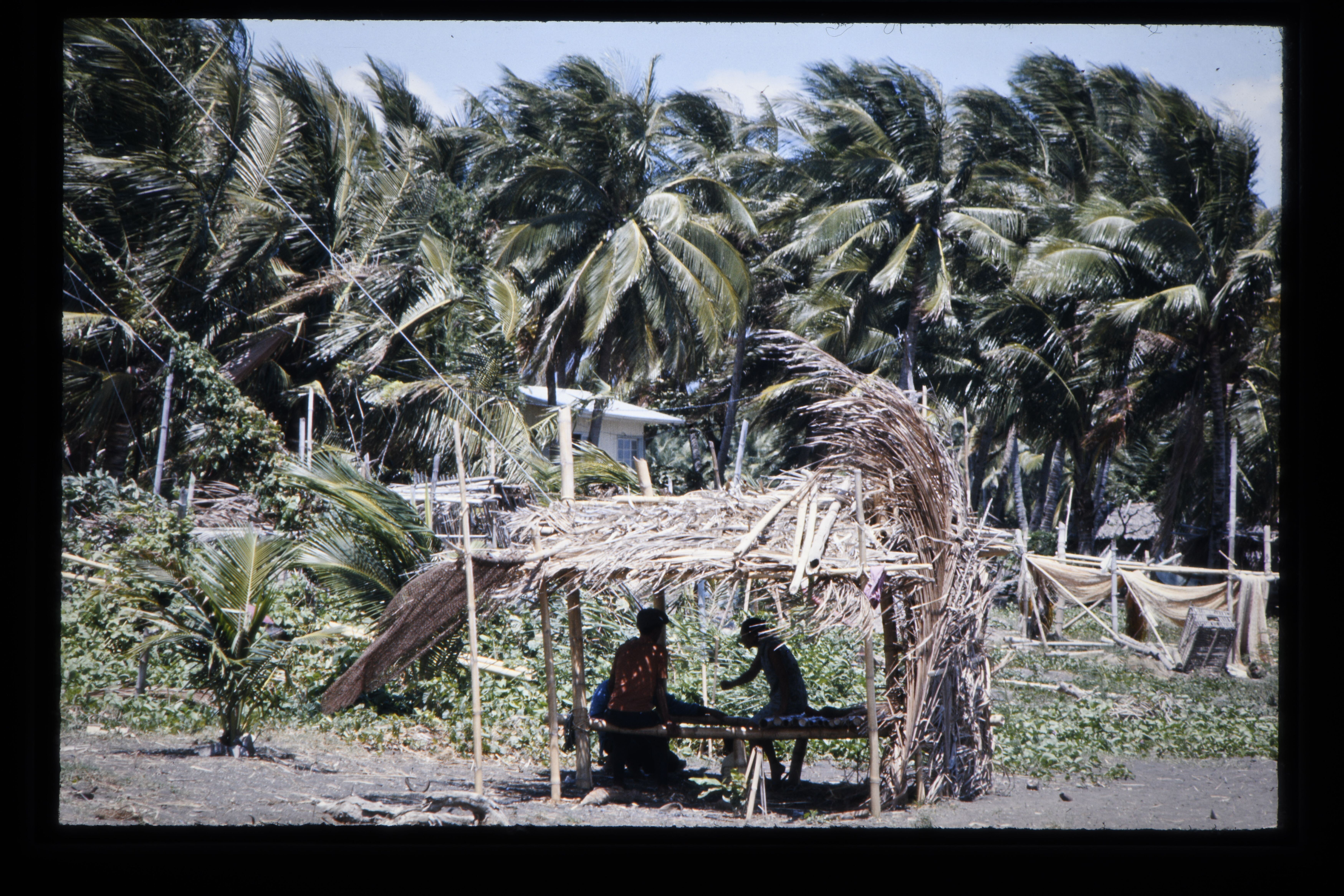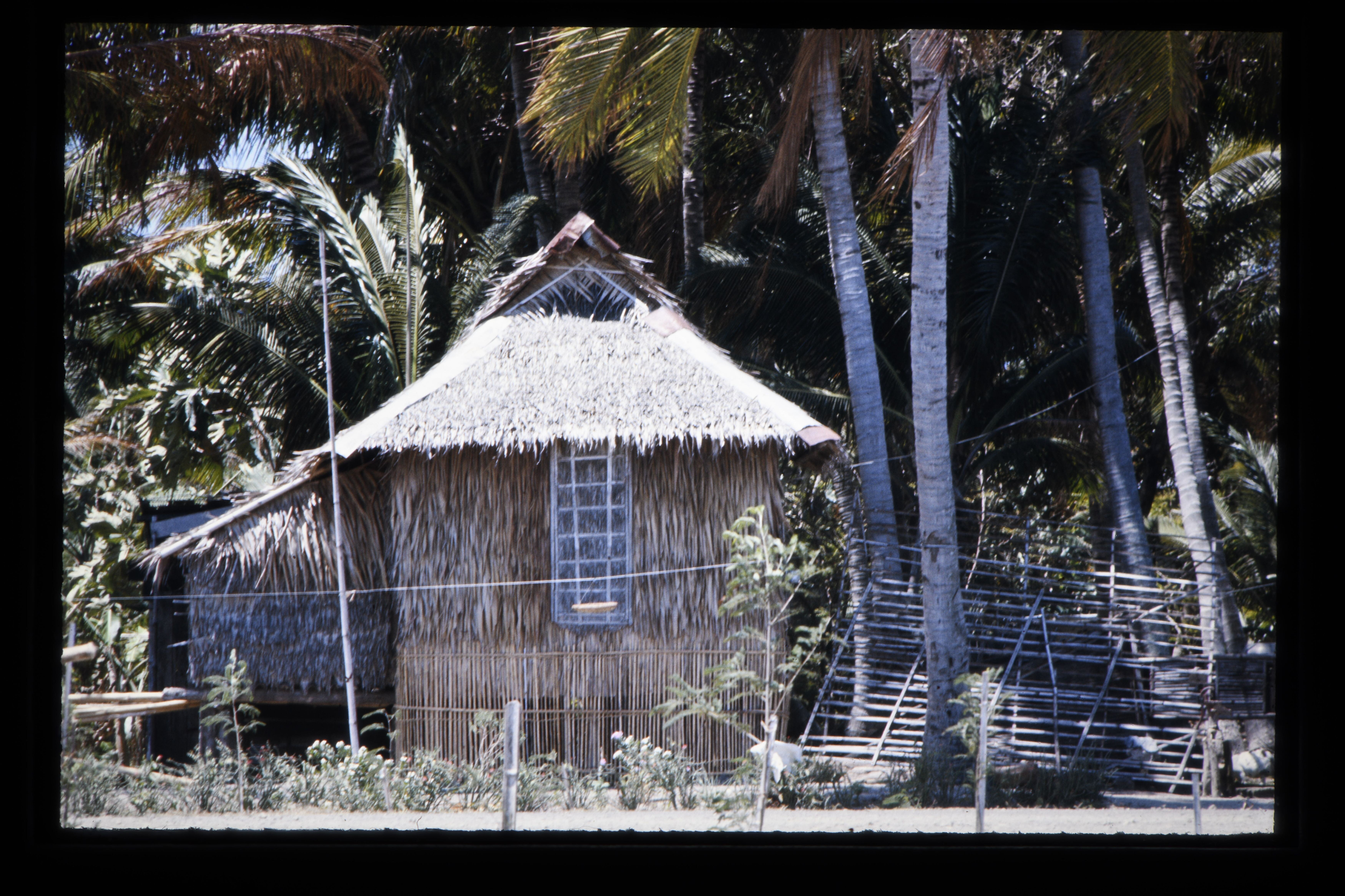 'Typische bouw van de Mangyans; muren van boomschors...