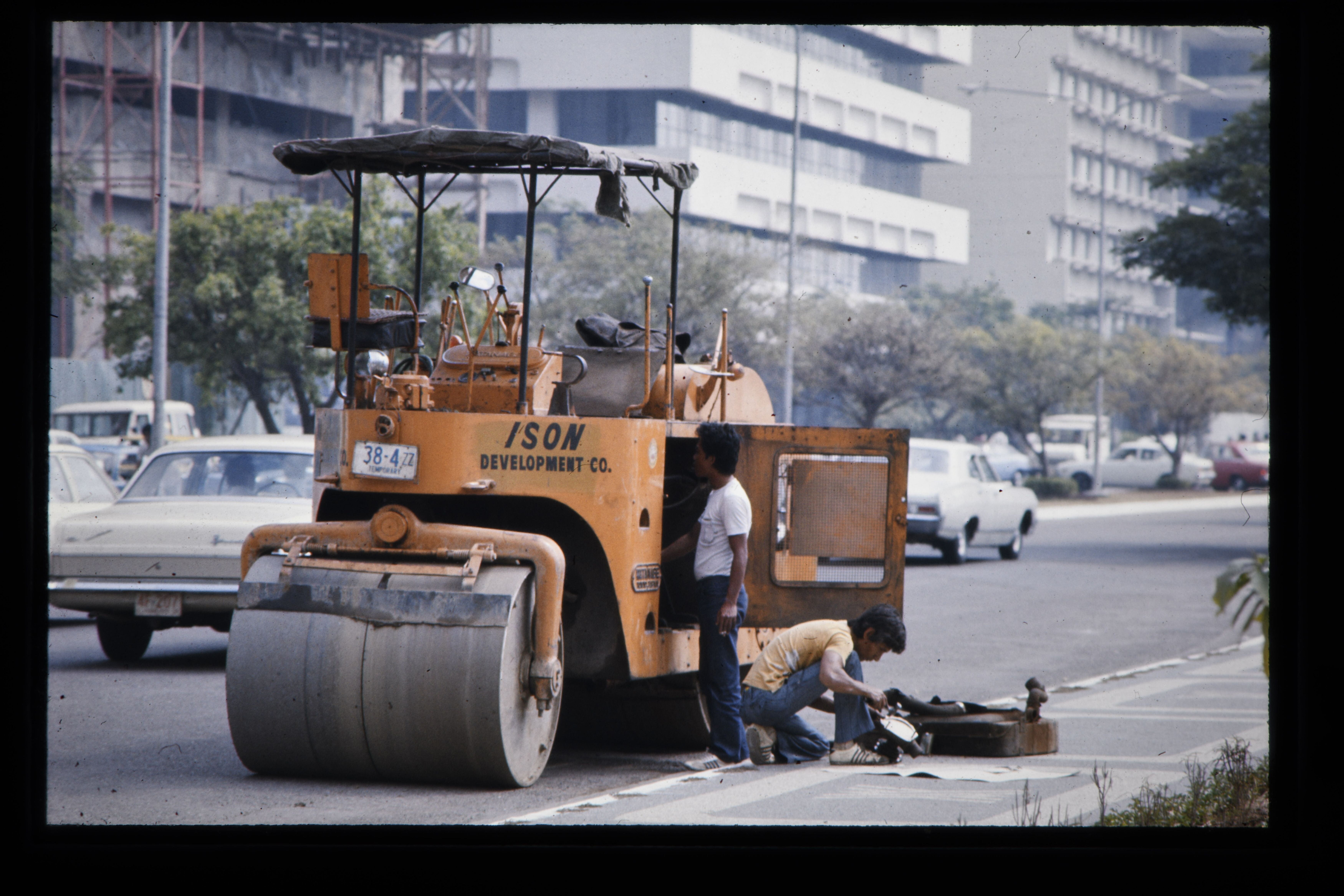 'Man repareert een stoomwals Makati area, Manilla'