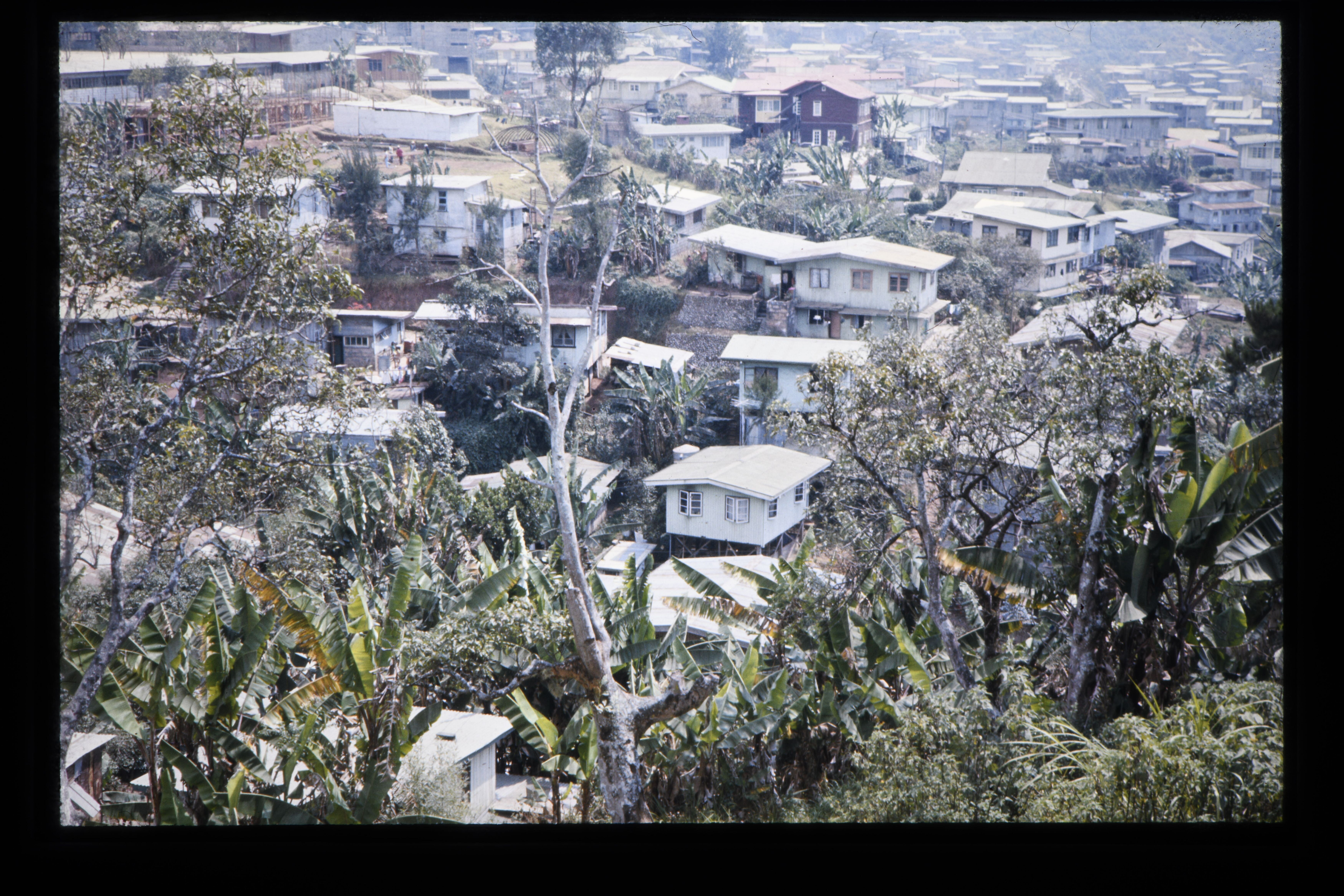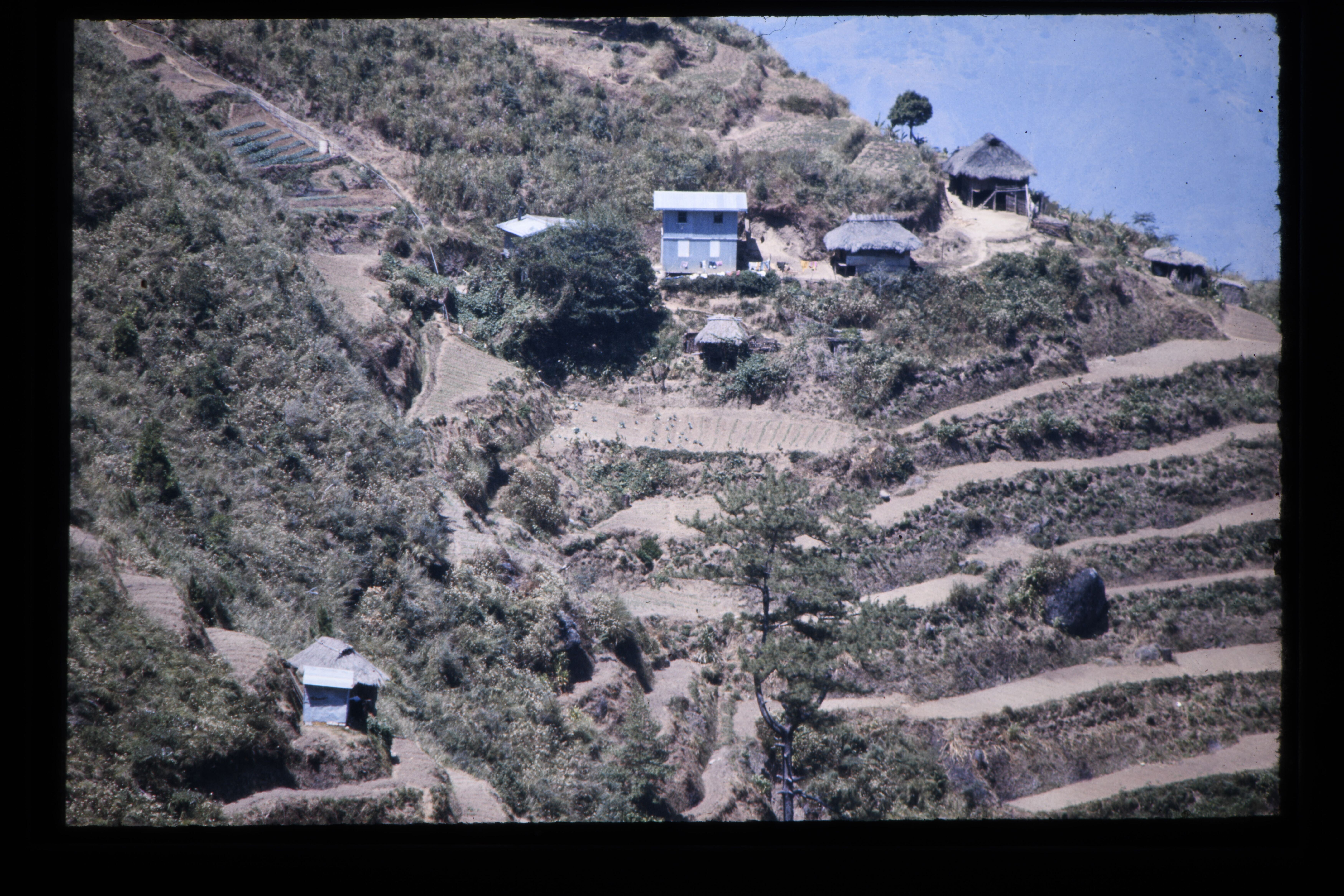 'Huizen in het dorp Banawe(?) Mountain provincie'