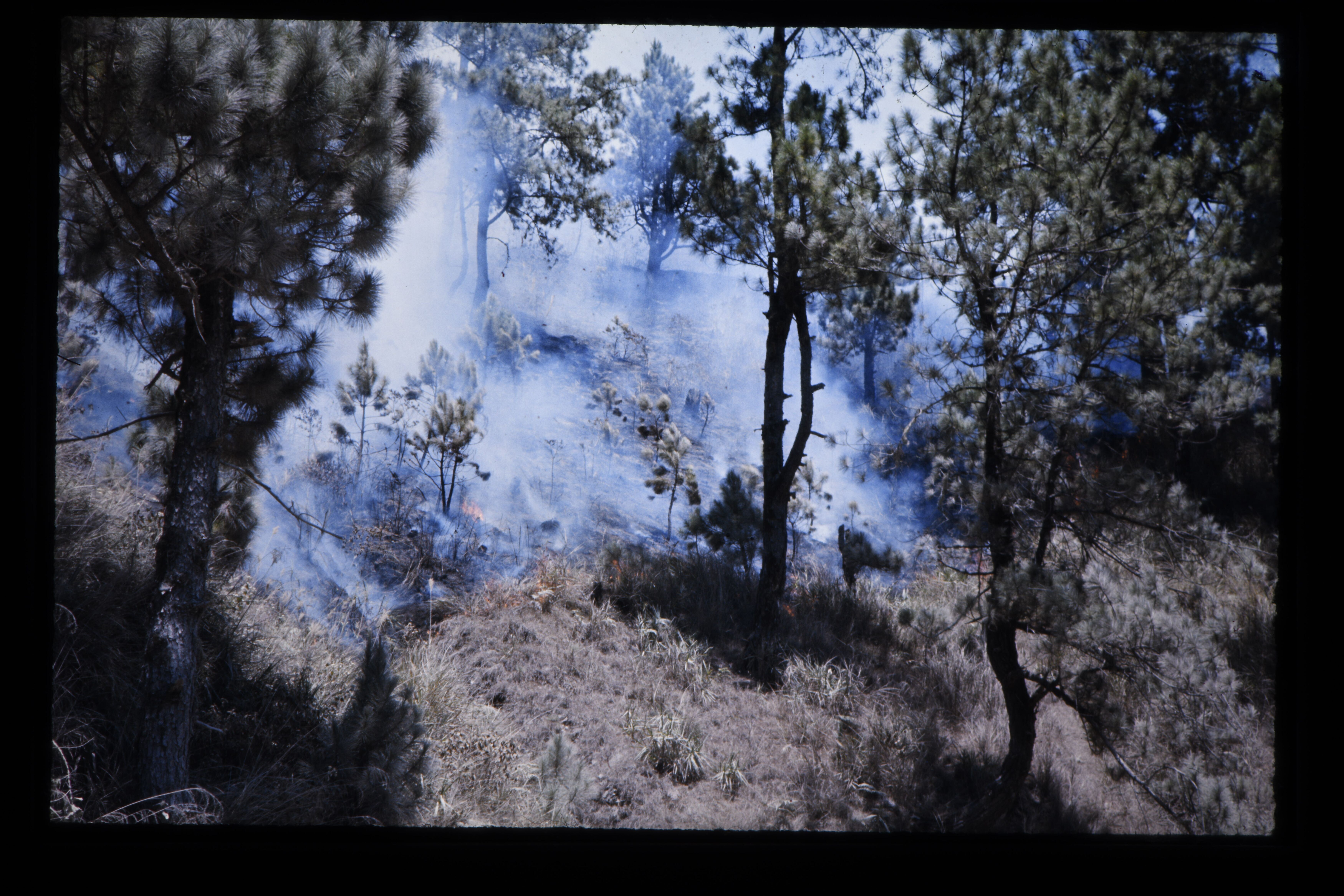 'Brand in de pinus (den) aanplant in de bergstreek t...