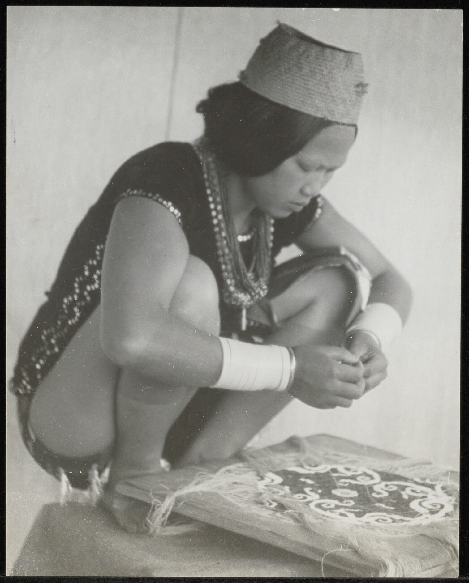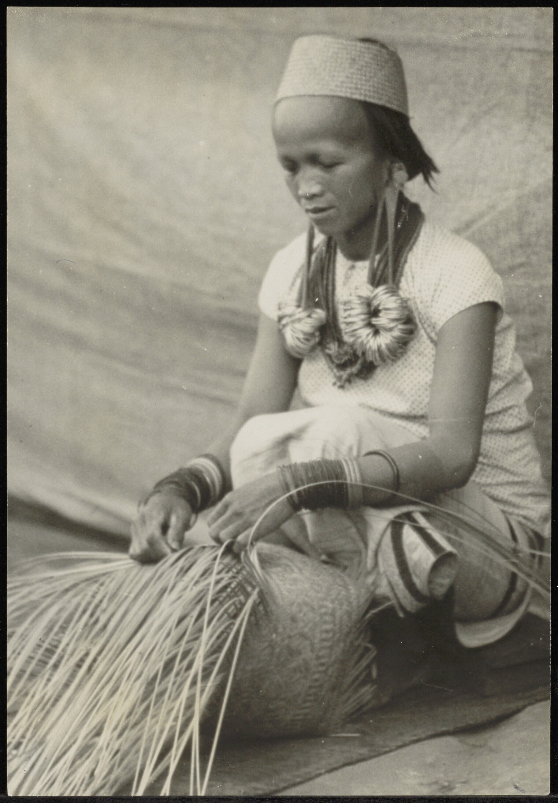 Dayak vrouw bezig met vlechtwerk of het vervaardigen...
