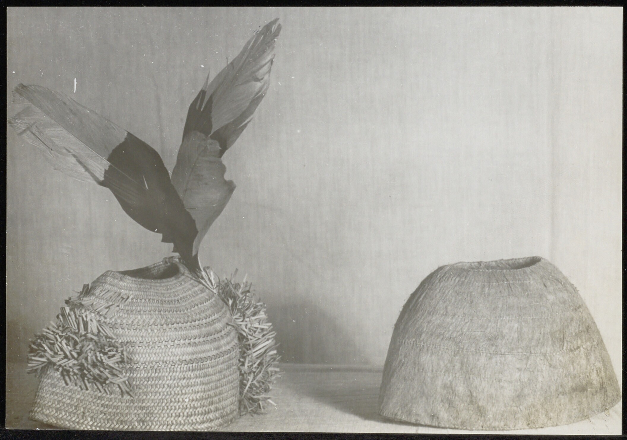 Twee hoofddeksels vervaardigd van vlechtwerk