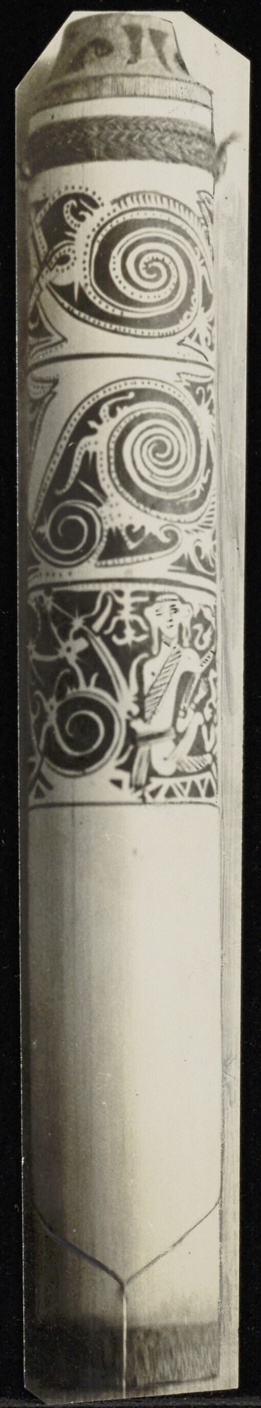 Houten cylindervormig voorwerp vastgehouden door aan...