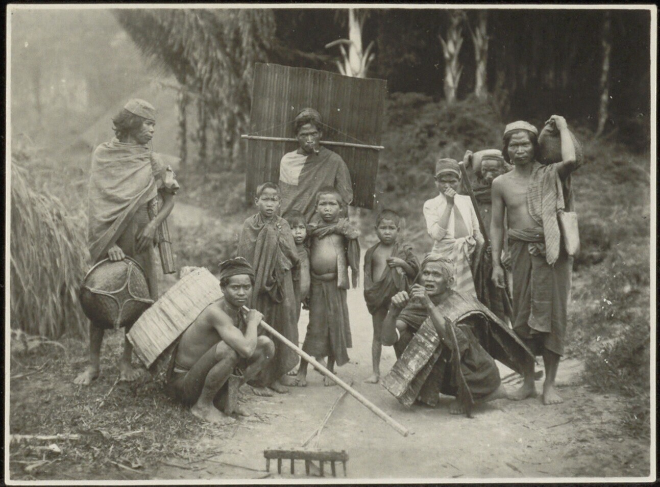 Apo-Kayan Dayak krijgers bij een gedood speenvarken