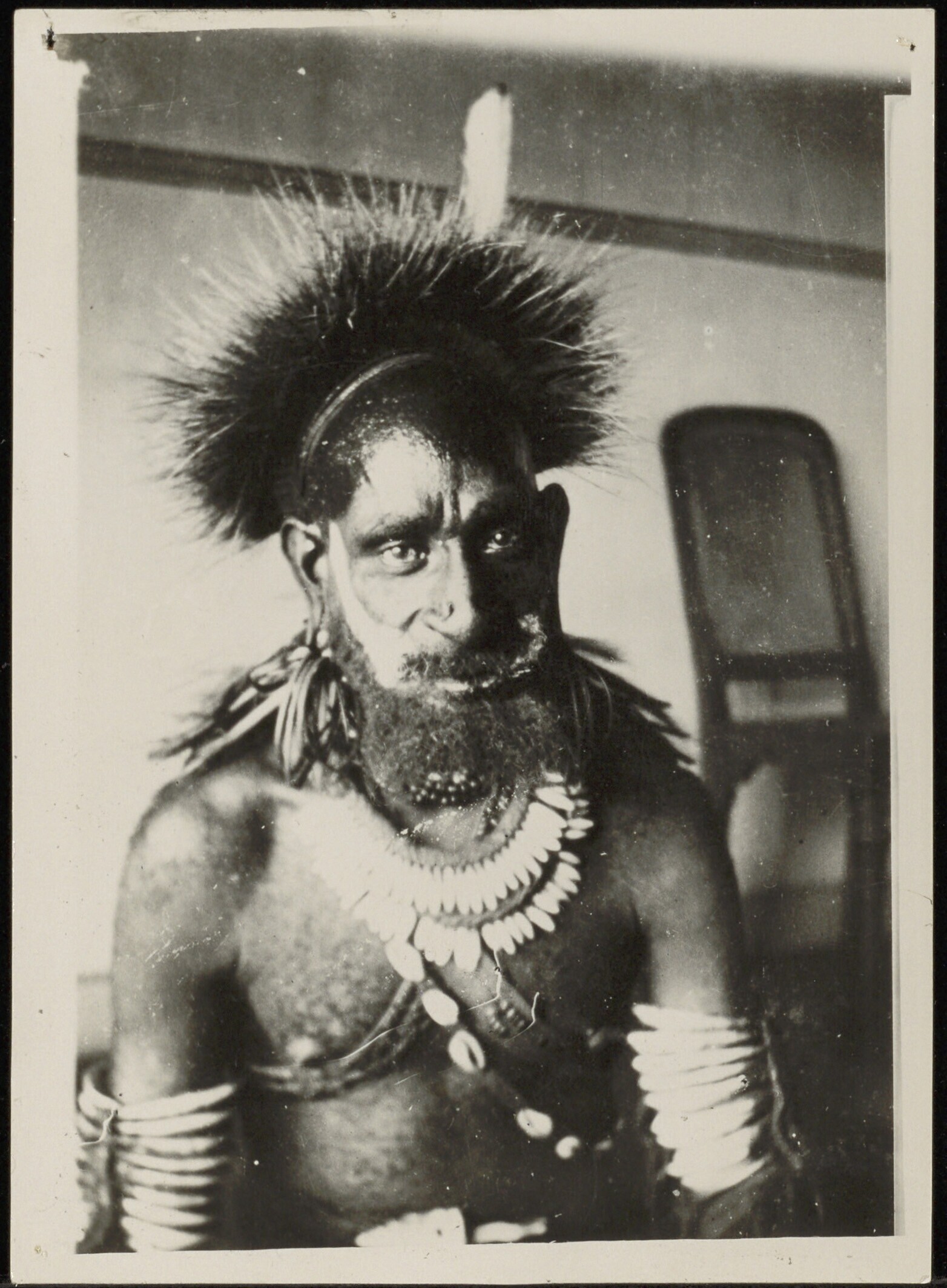 Portret van bij Apo-Kayan Dayaks op bezoek zijnde be...