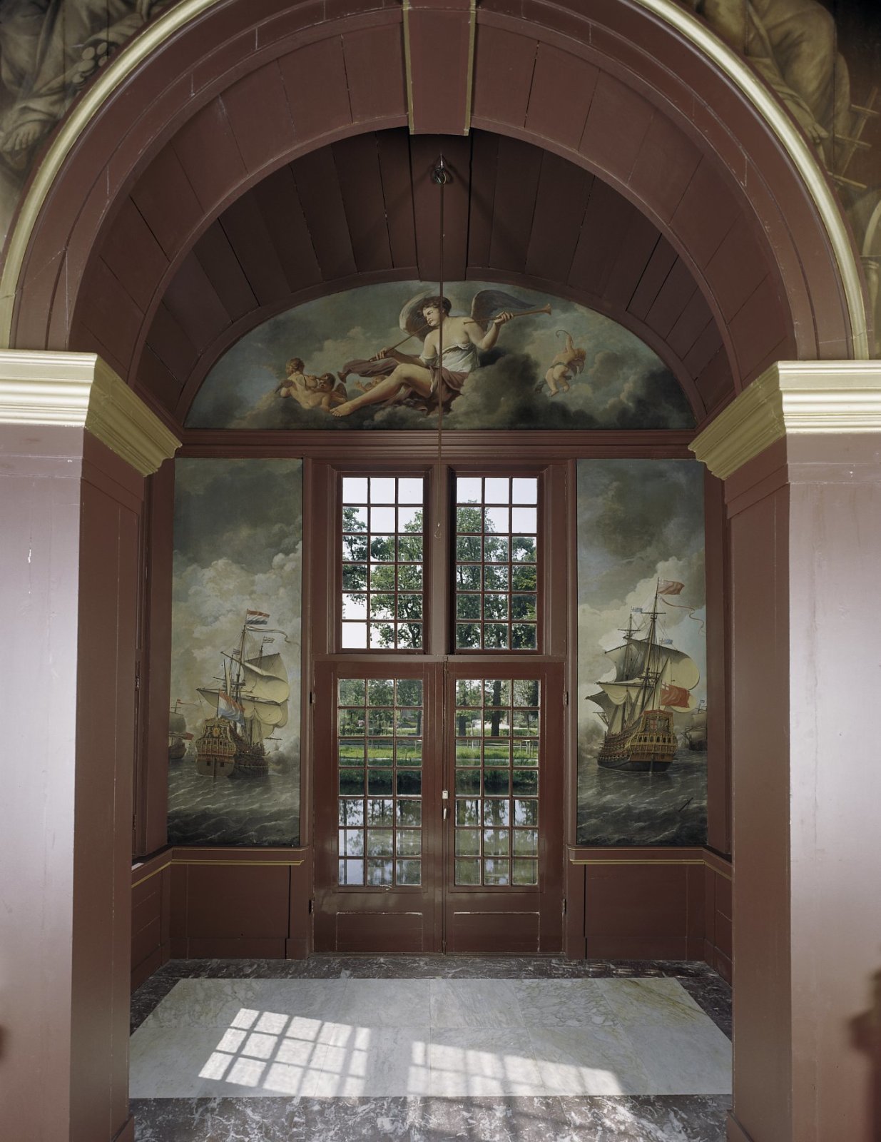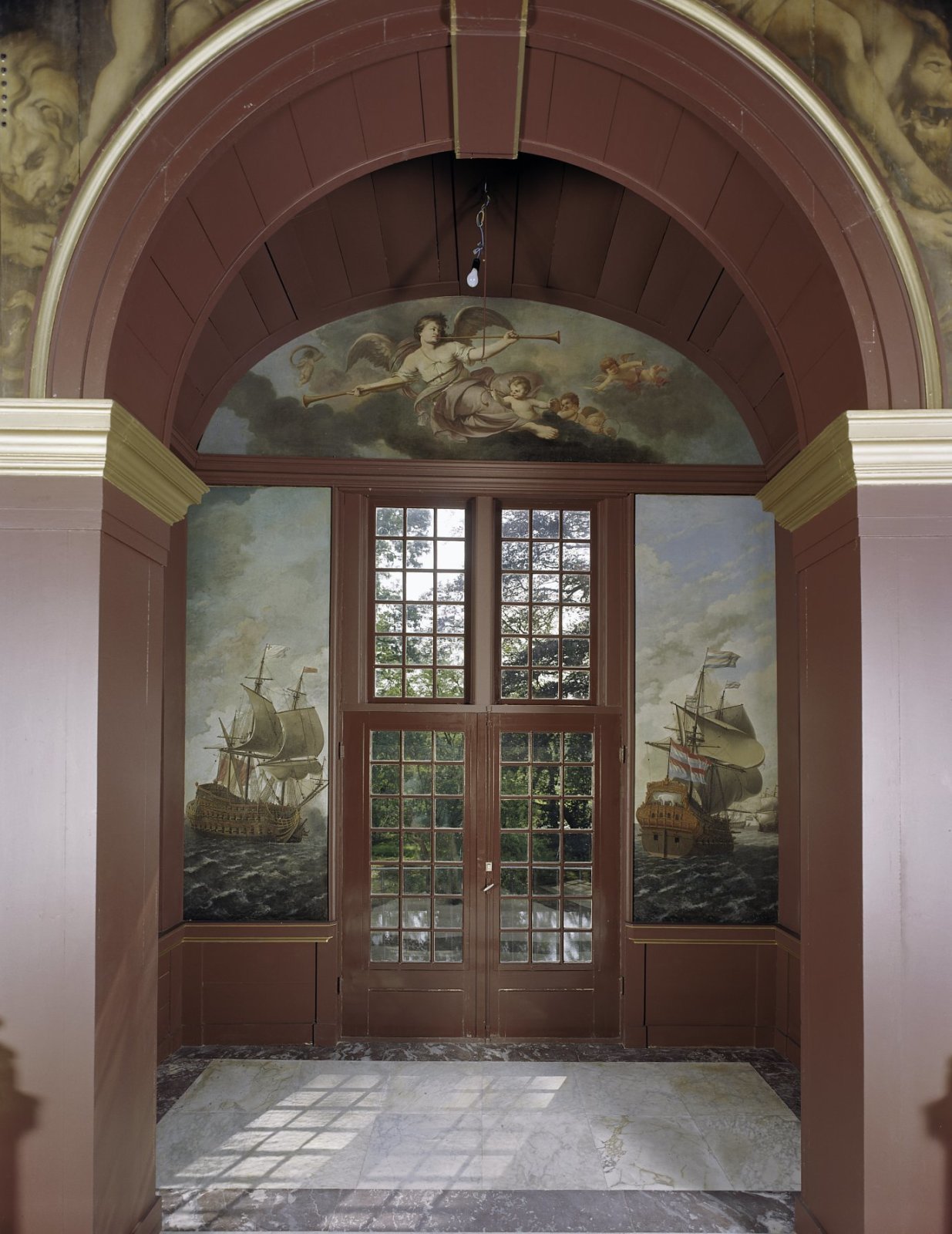 Oranjezaal na de restauratie: snijwerk boven hoofdin...