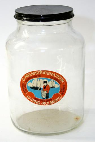 Glazen langwerpige pot met zwarte metalen schroefdek...