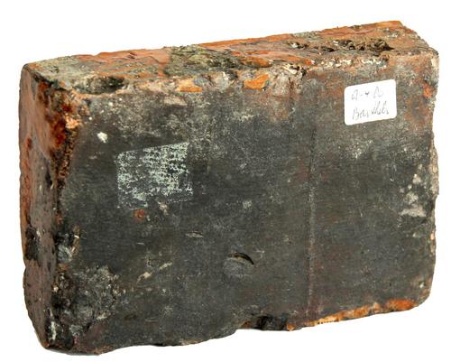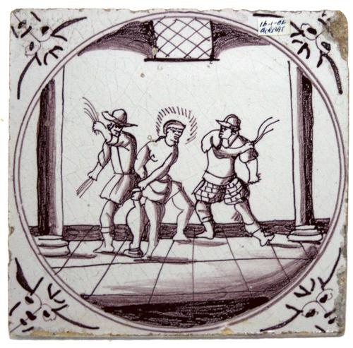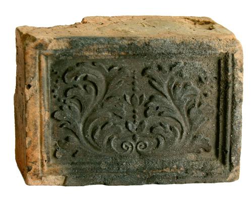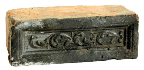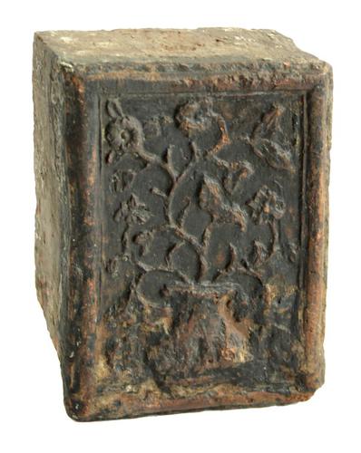 Haardsteen, met initialen I H S gemaakt van bloemkno...