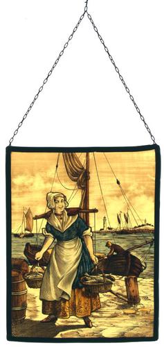 Vissersvrouw. Rechthoekig gebrandschilderd glas in l...