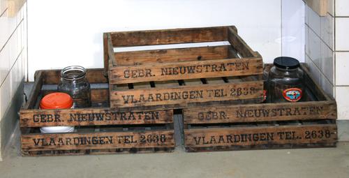 Drie houten kratjes met opdruk, Gebr. Nieuwstraten V...