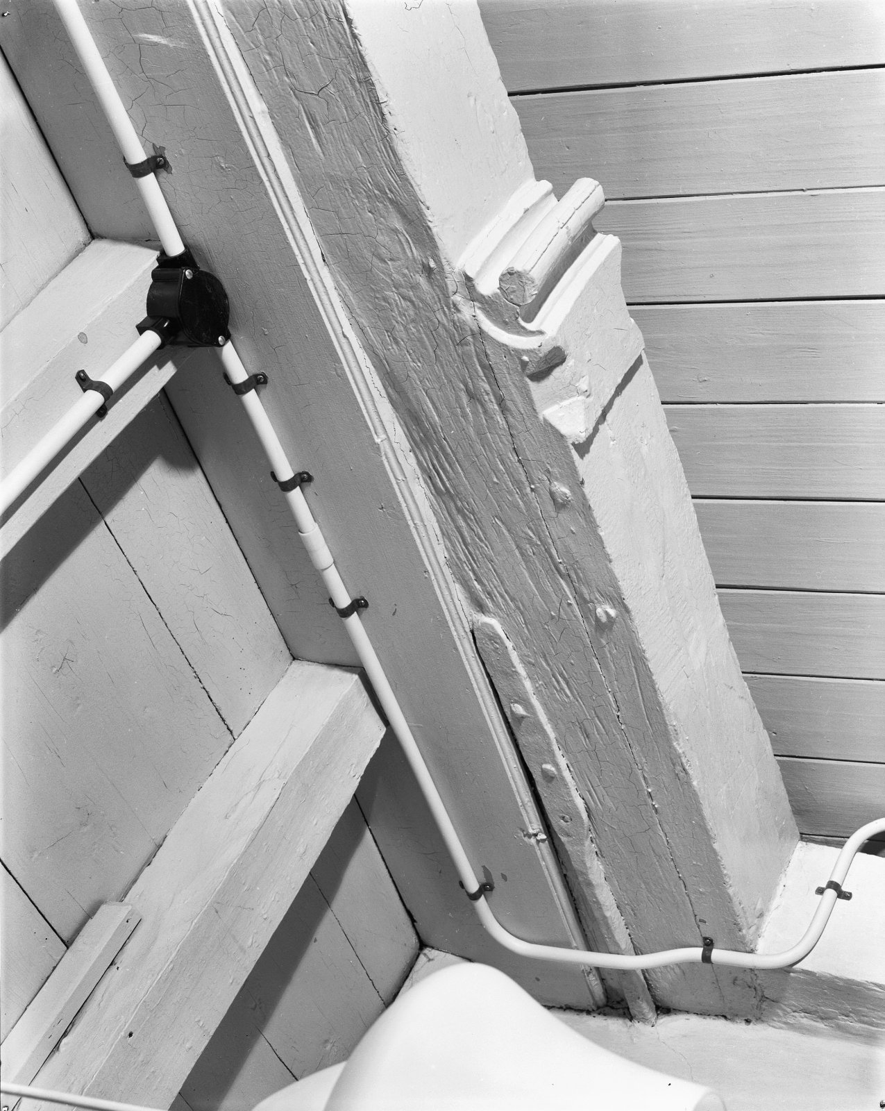 Interieur, sleutelstuk op de verdieping tegen de ach...
