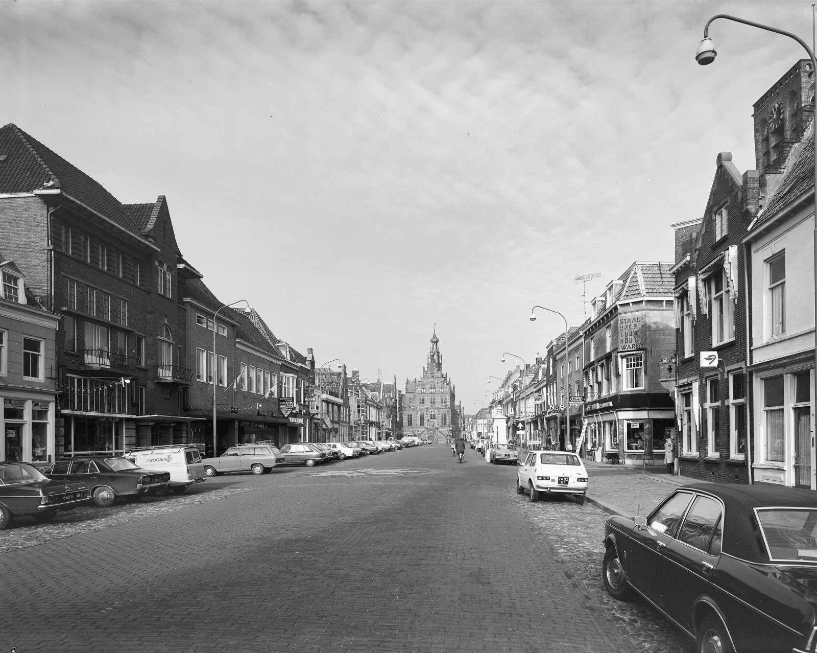 Zicht vanaf de Markt op het stadhuis en daarachter n...