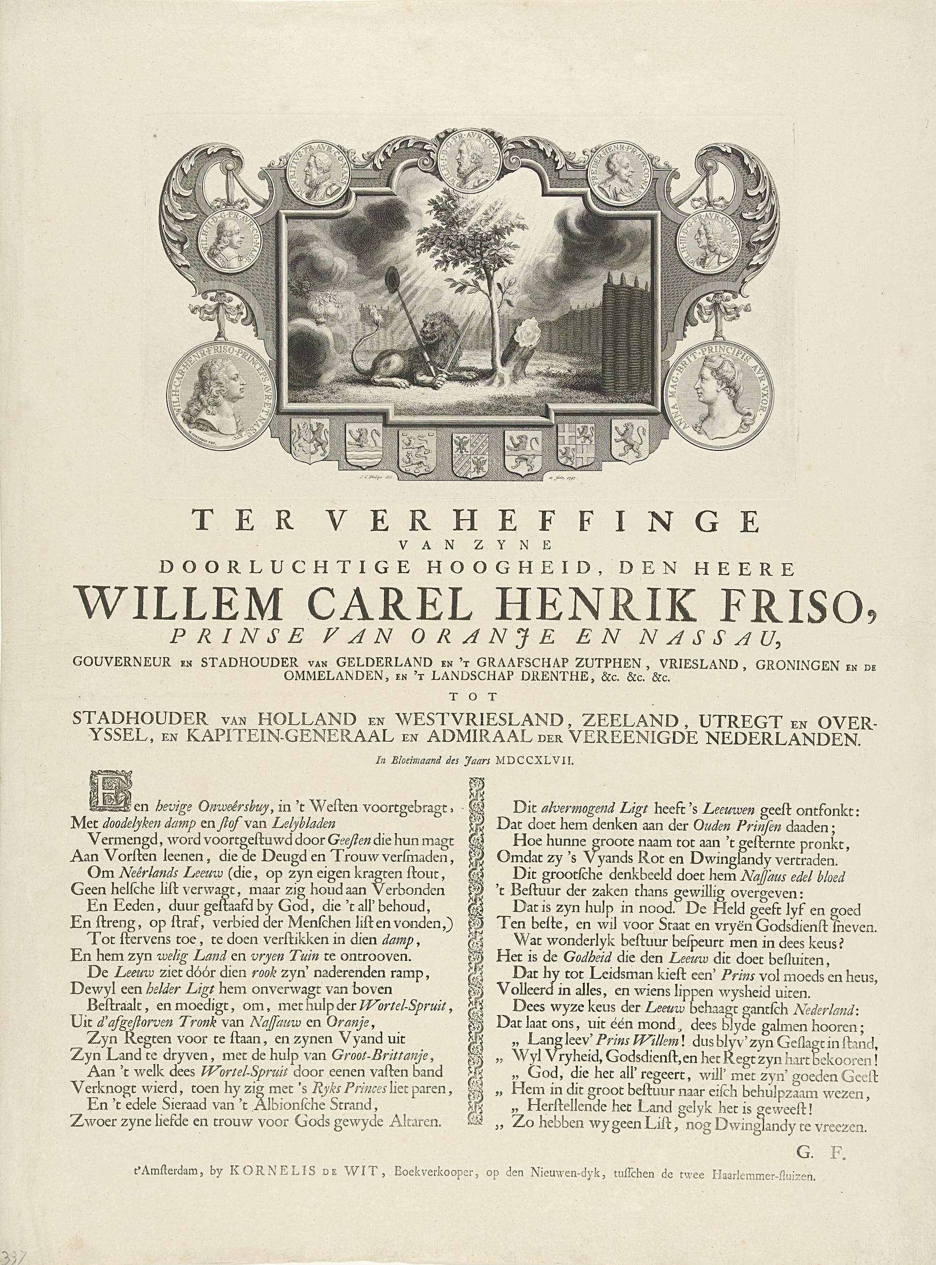 Allegorie op de verheffing van Willem IV tot stadhou...