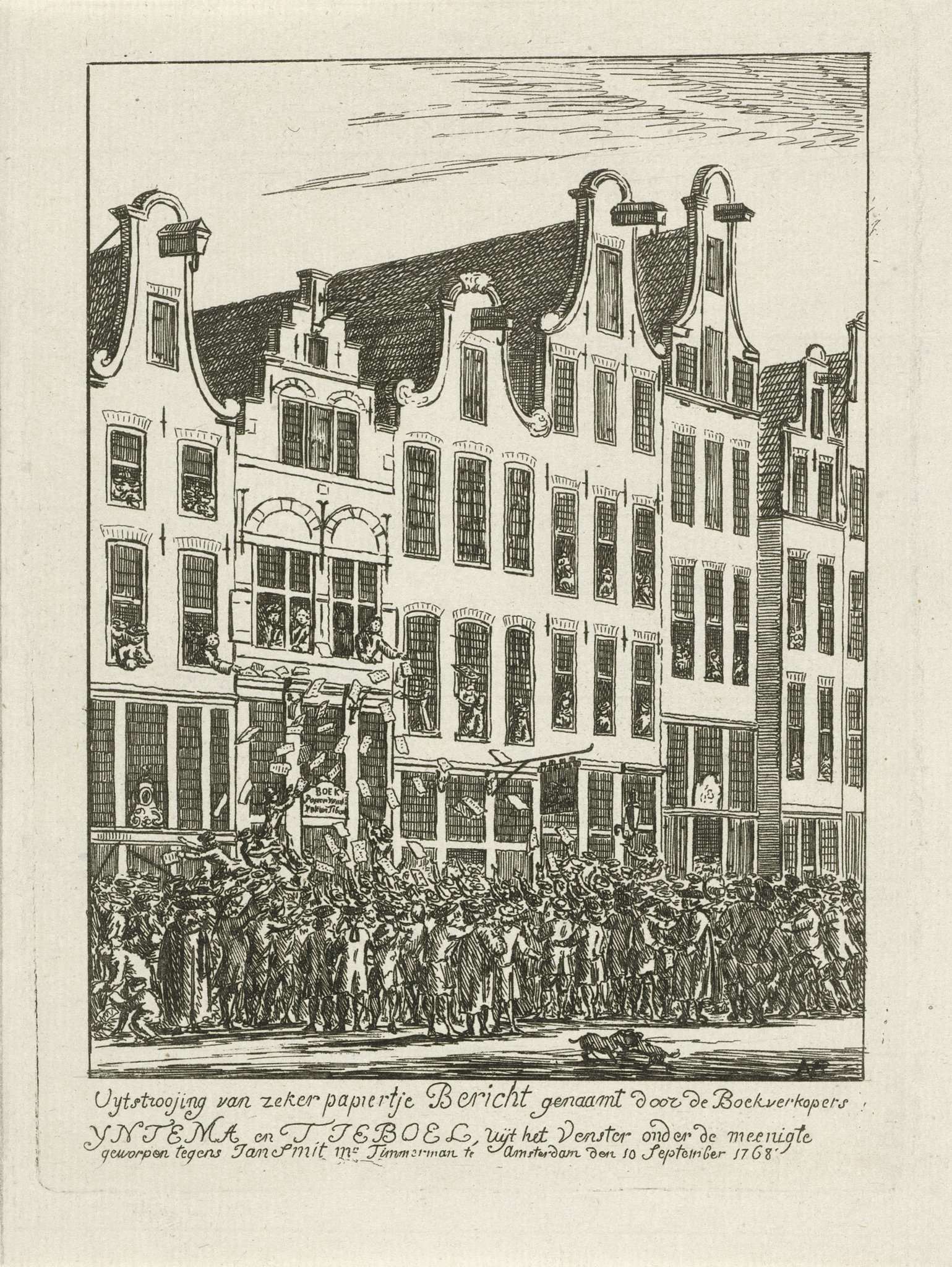 Uitstrooien van een pamflet door de uitgevers Yntema...