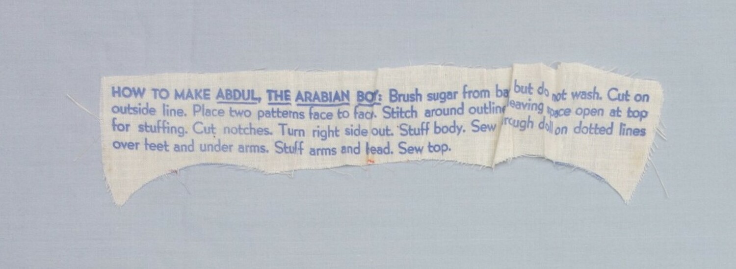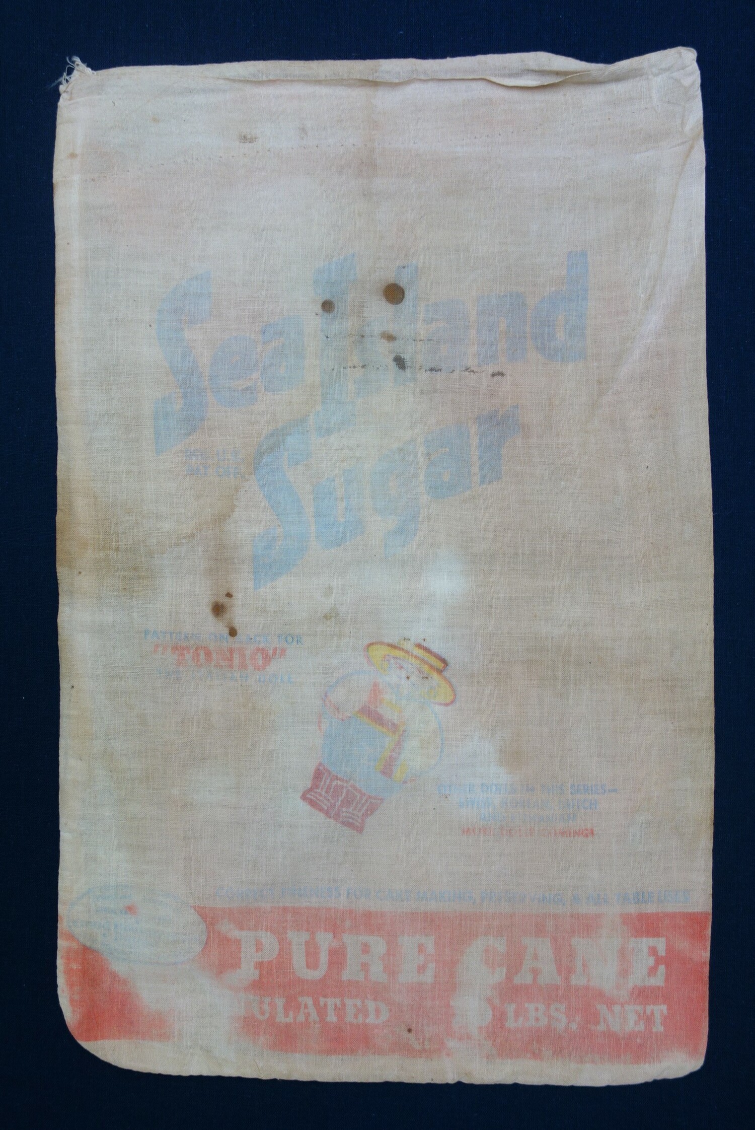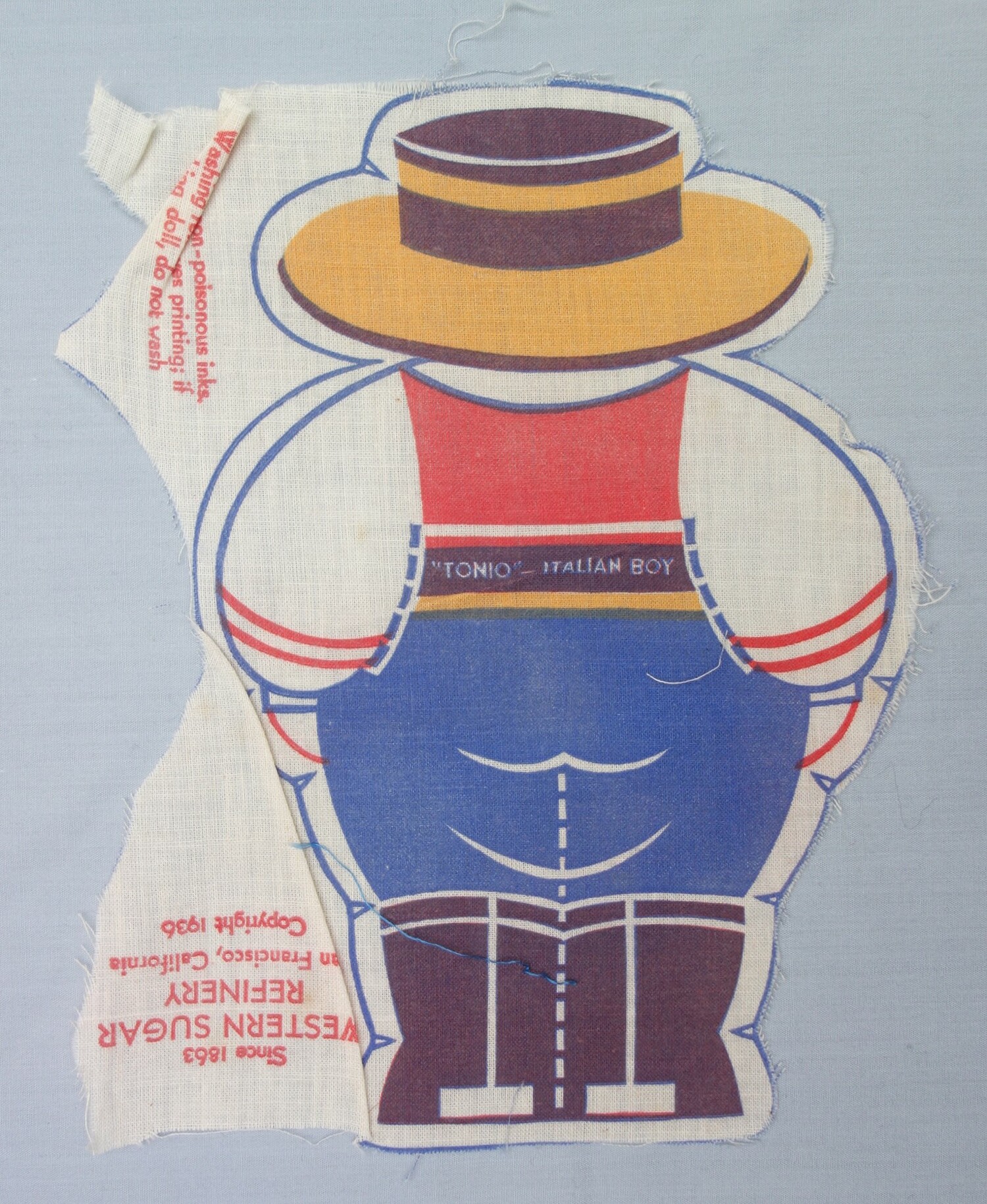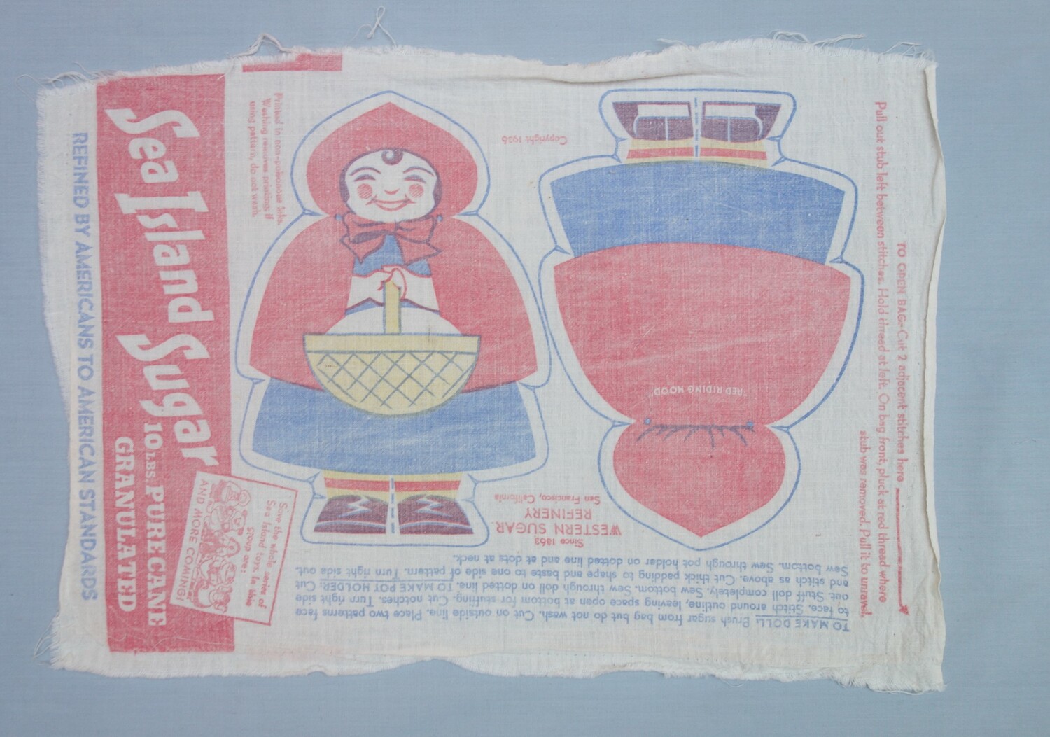 Wit katoenen borduurlapje met vijf vierkanten. 1936.