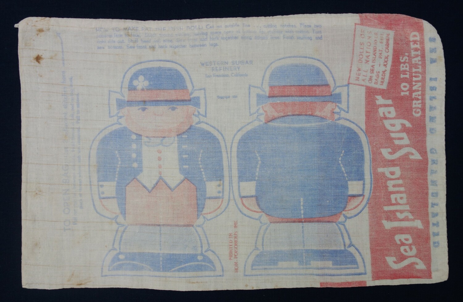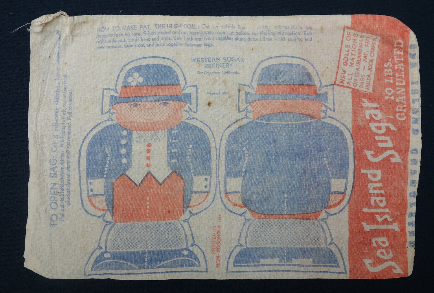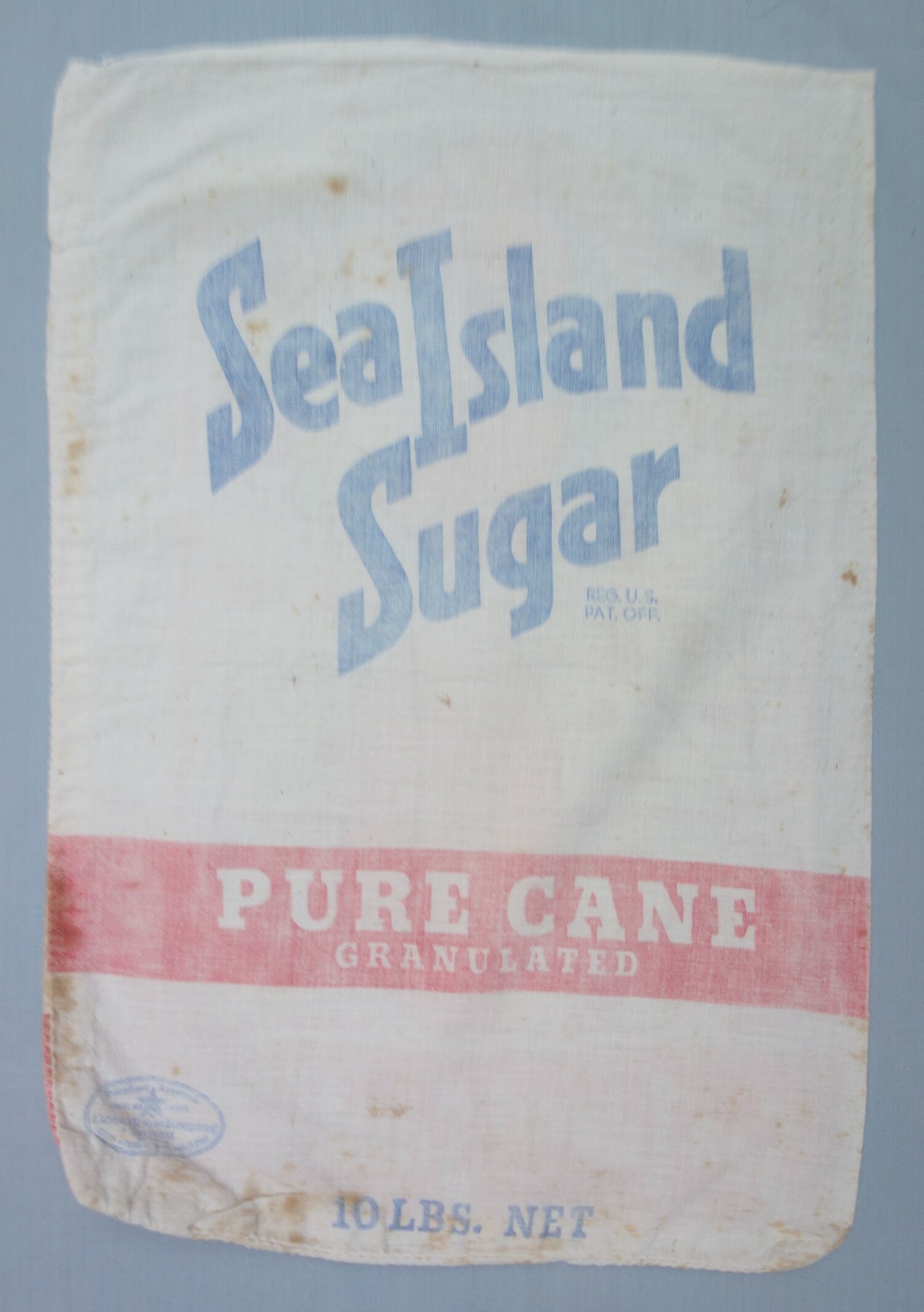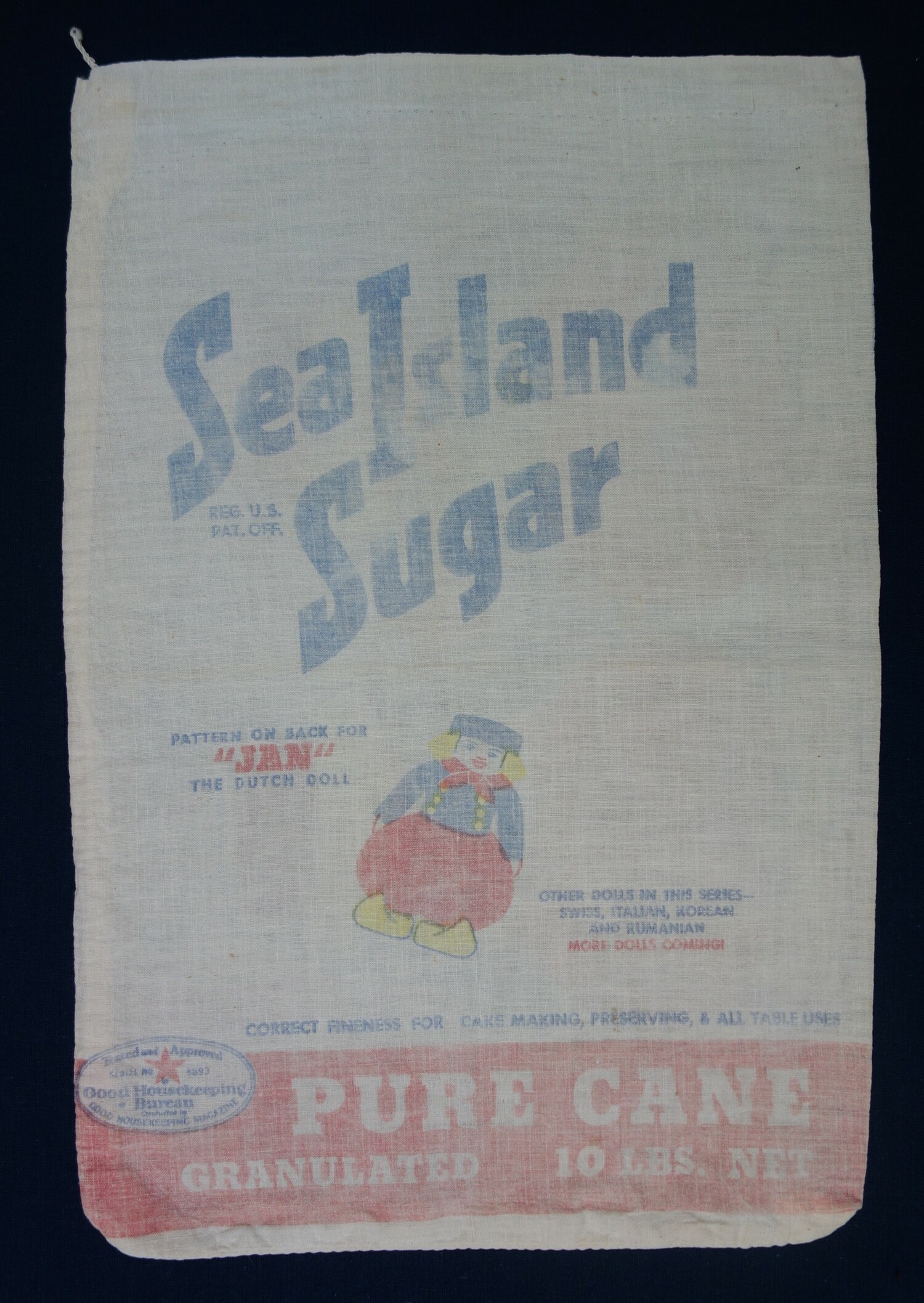 Wit katoenen borduurlapje met vijf vierkanten. 1936.