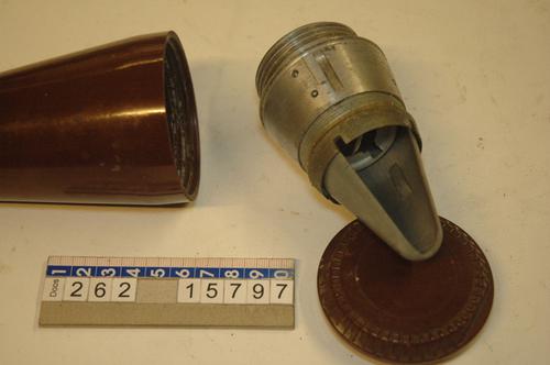 Duitse granaatkop in bakelieten houder