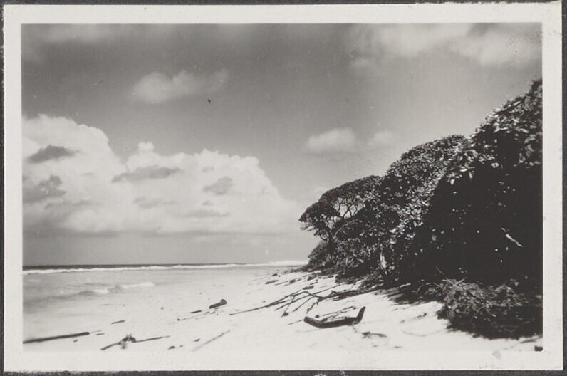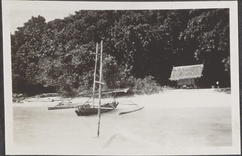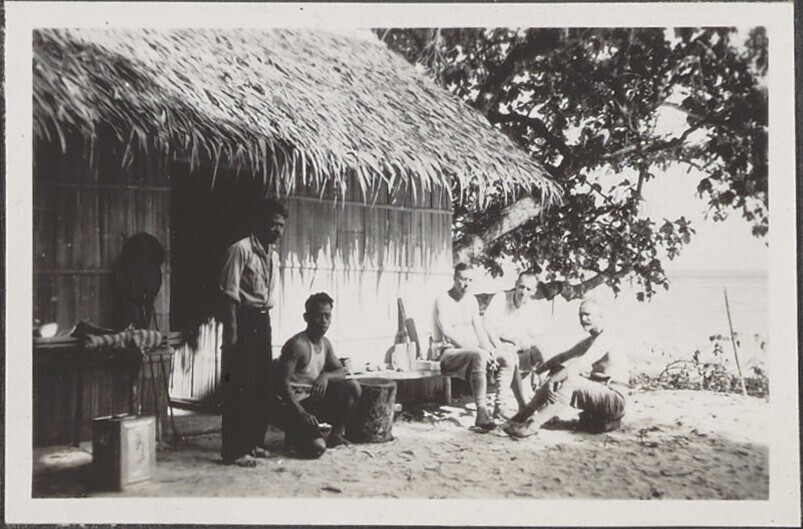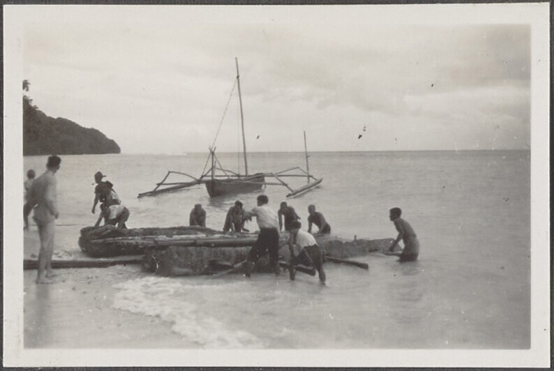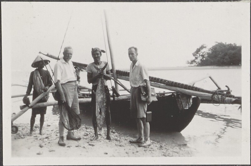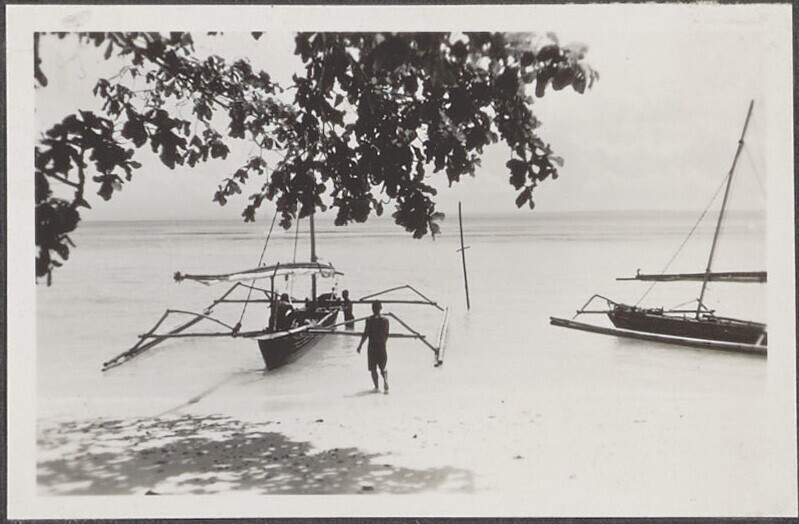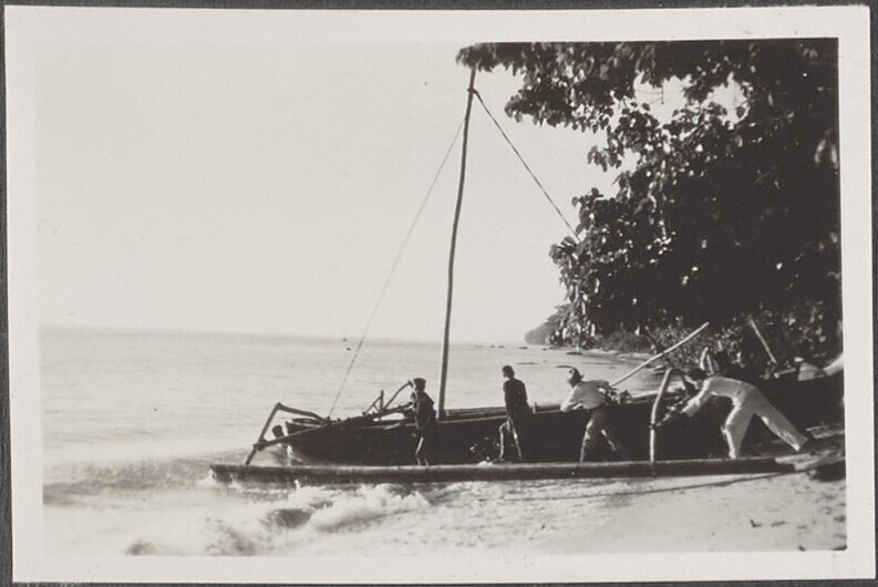 Mannen bij aankomst op het strand van Moearabinoeang...
