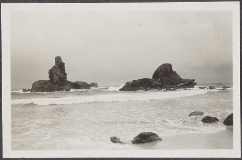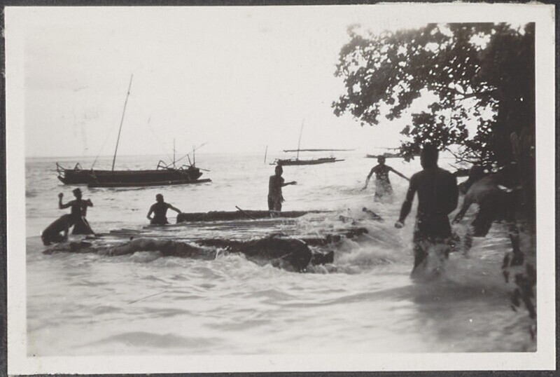 Vissers met netten in de branding bij Tjisolok, Wijn...