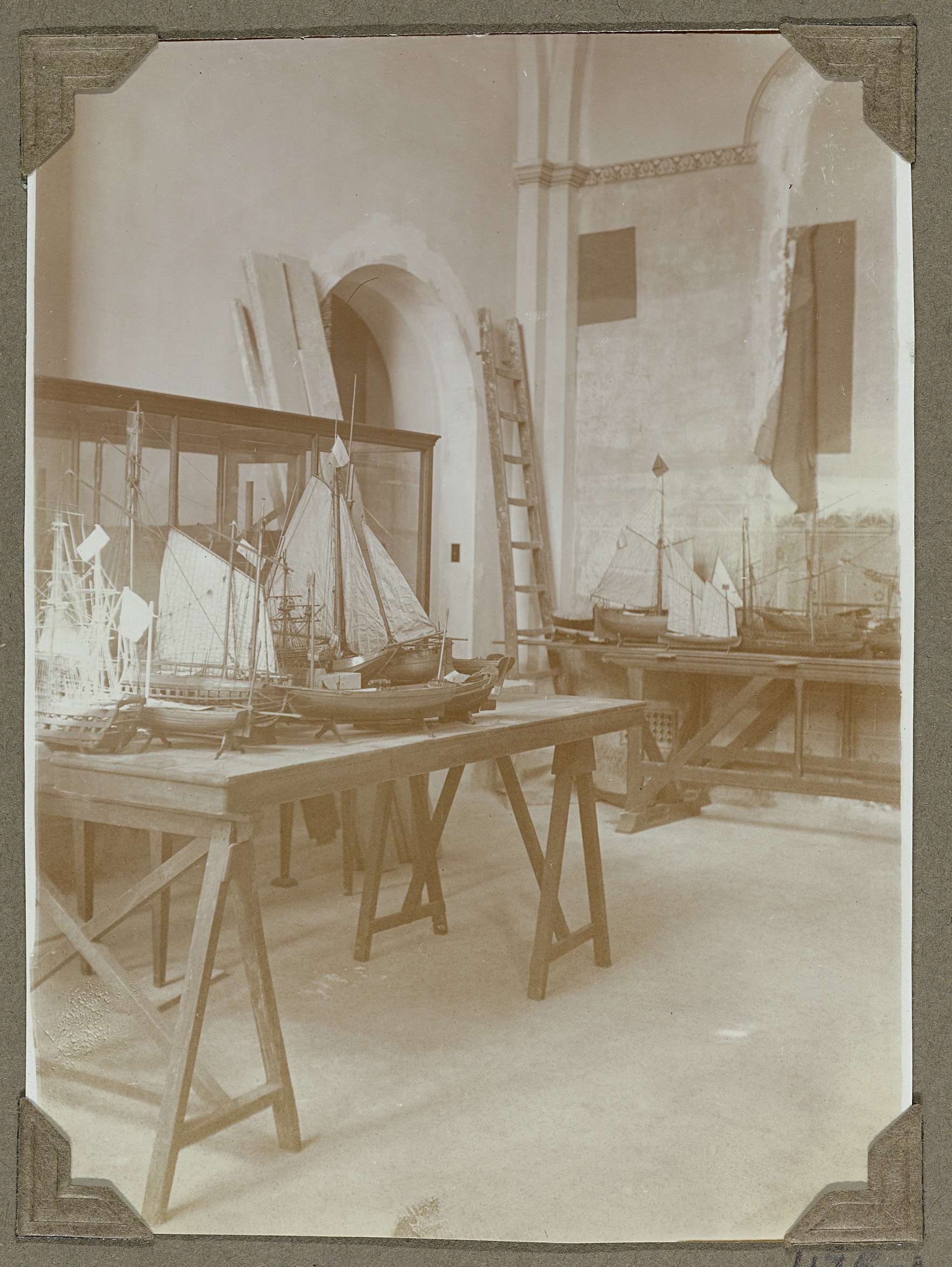 Scheepsmodel opgesteld in de vernieuwde modellenzaal...