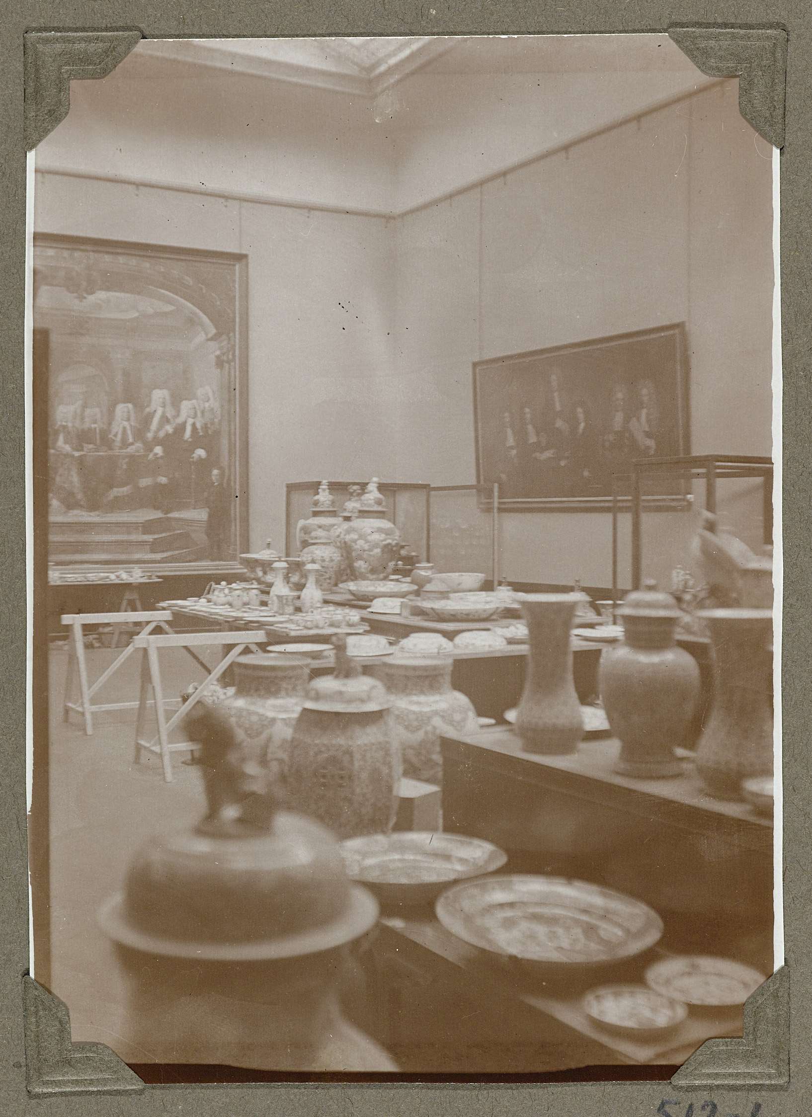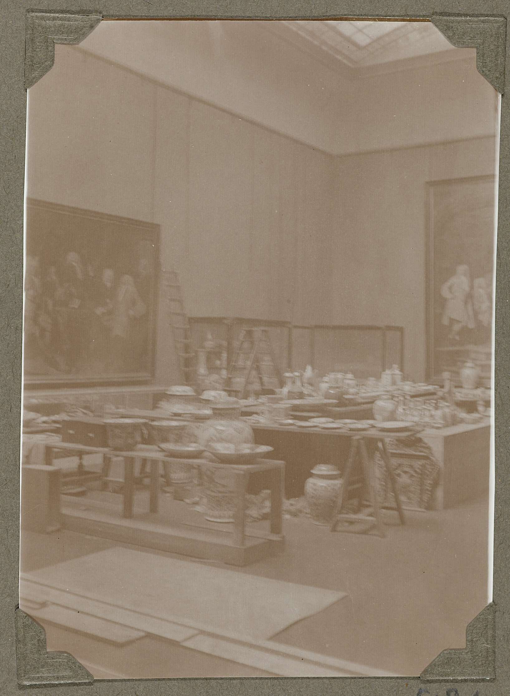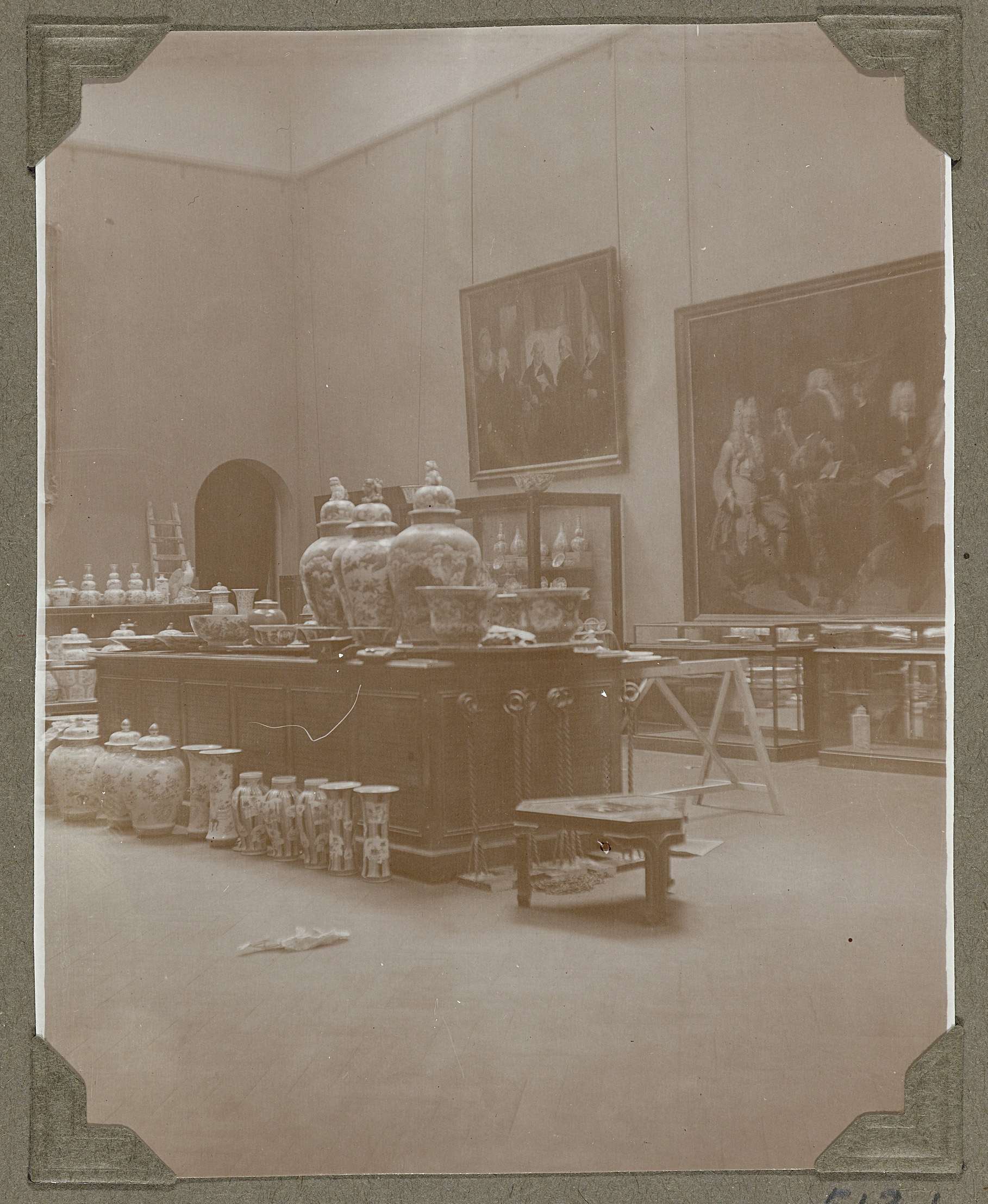 Opstelling van Delfts aardewerk in de Eregalerij in ...