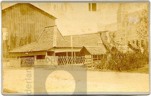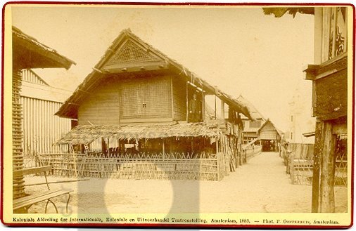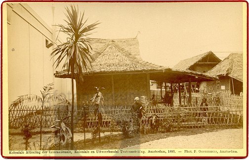 Kampong met model van een Atjehse woning op de Kolon...