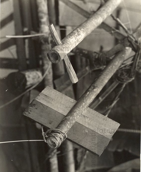 Koloniale Afdeling met het model van een weefhuisje ...