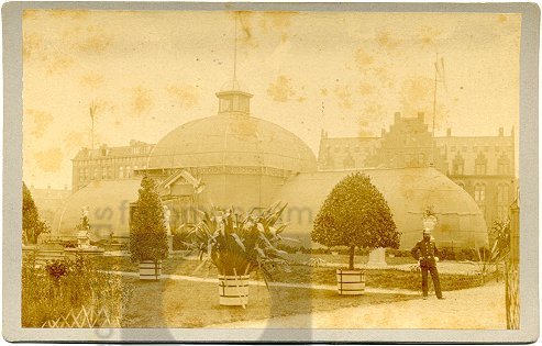 Exterieur van de kas met tropische planten op de Kol...