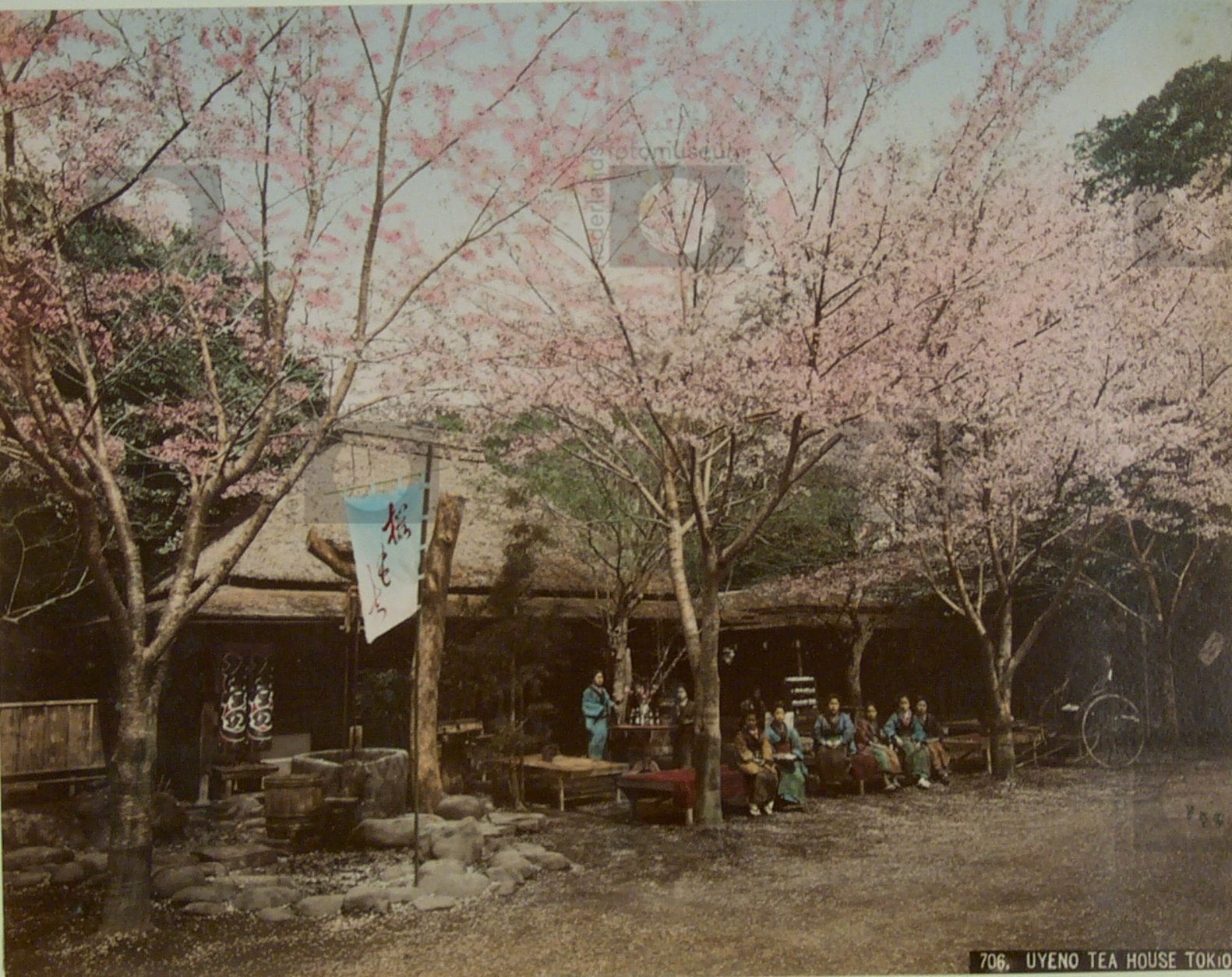 Theehuis met kersenbloesems in Ueno Park, Tokyo, Jap...