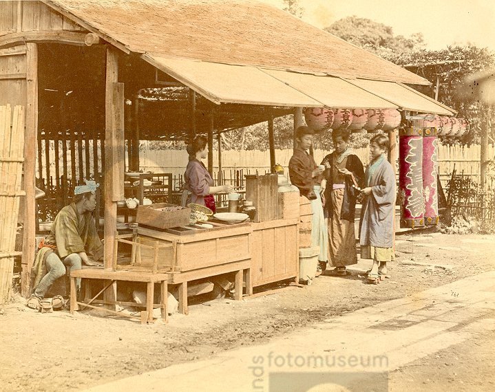 Een eetstalletje op straat, Japan, (1863-1885)