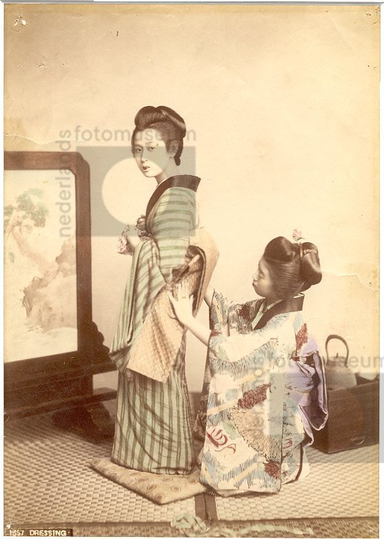 Studioportret van twee vrouwen in kimono, Japan (186...