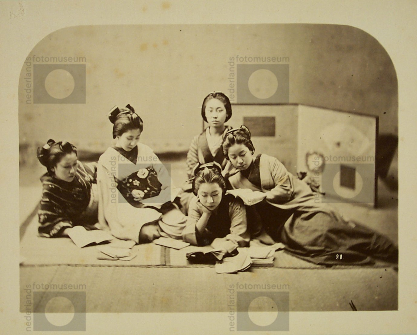 Studioportret van vijf lezende vrouwen, Japan (1874-...