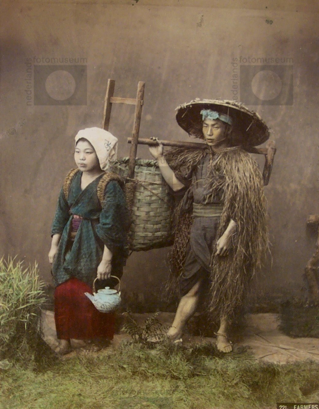 Portret van boeren echtpaar, Japan (1881-1914)