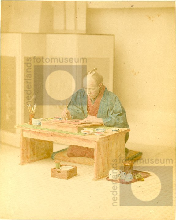 Studioportret van een Japanse schilder aan het werk,...
